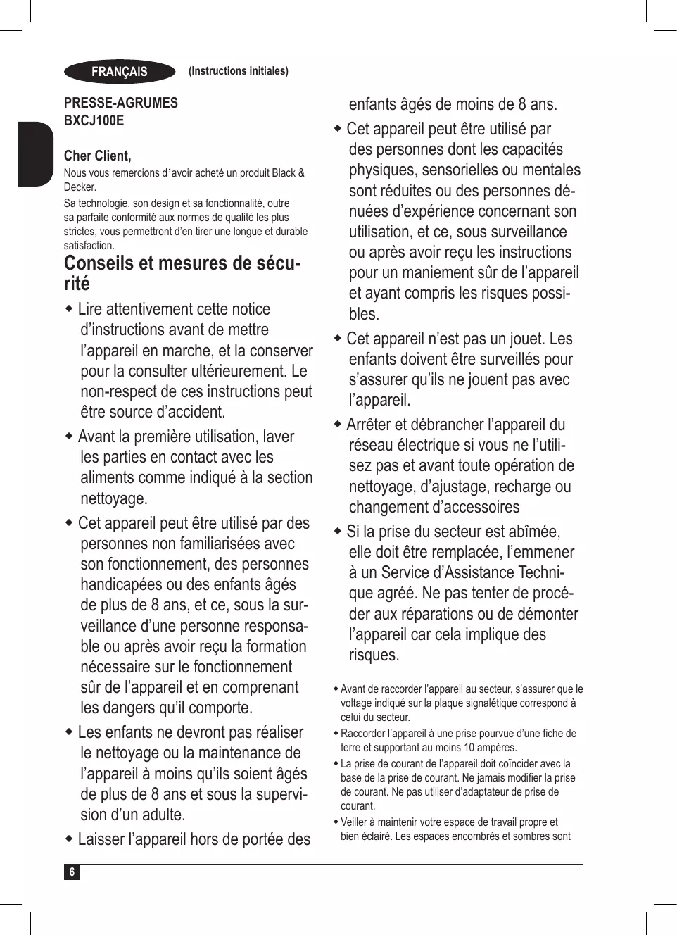 MODE D'EMPLOI BXCJ100E BLACK & DECKER