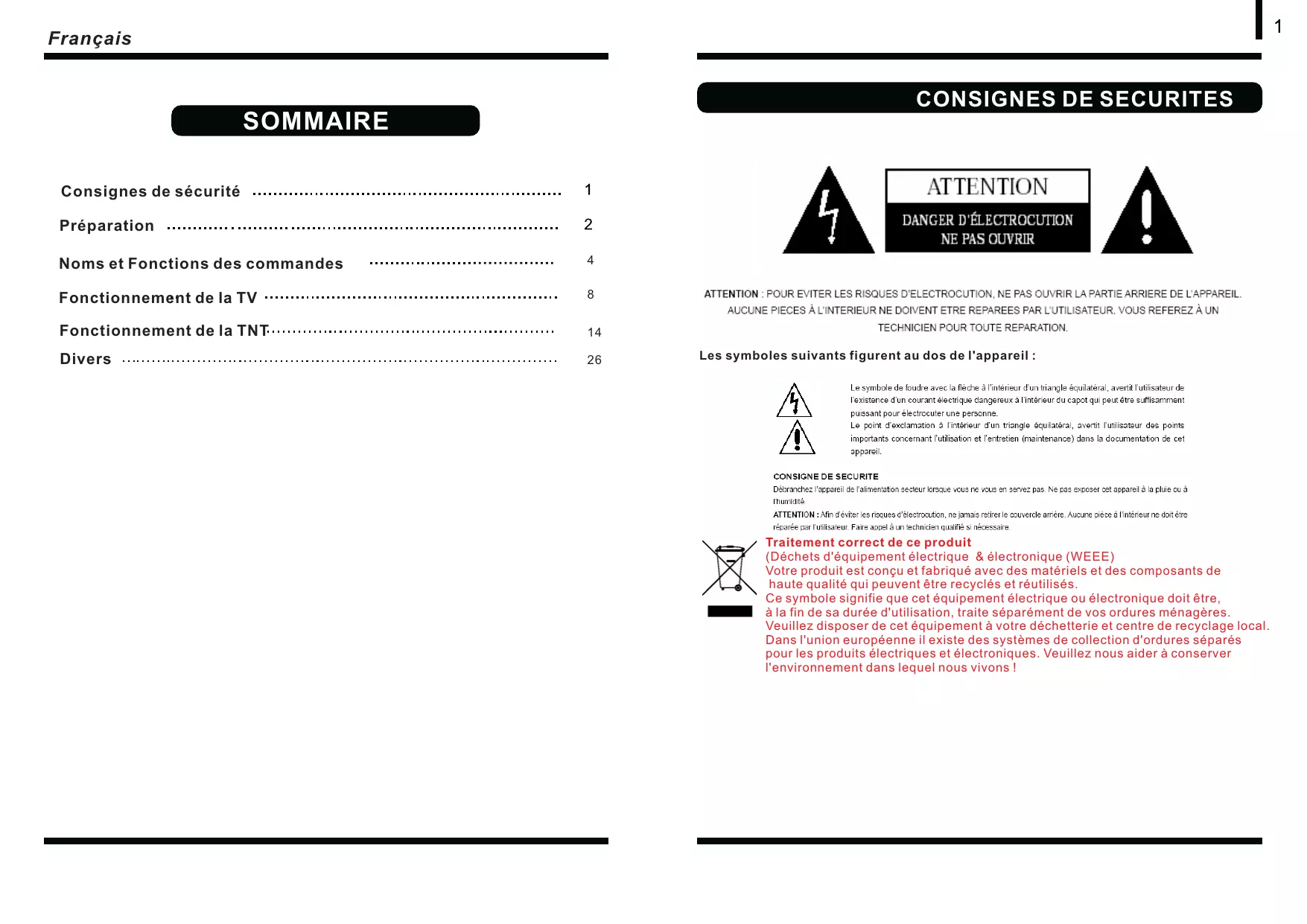 ATTENTION: Afin d'éviter les risques d'électrocution, ne jamais retiret le couvercle arriere. Aucune pièce à l'intérieur ne doit être réparée par l'utilisateur. Faie appel à un technicien qualifié si nécessaire.