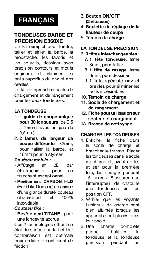 MODE D'EMPLOI E 860 XE KIT BABYLISS