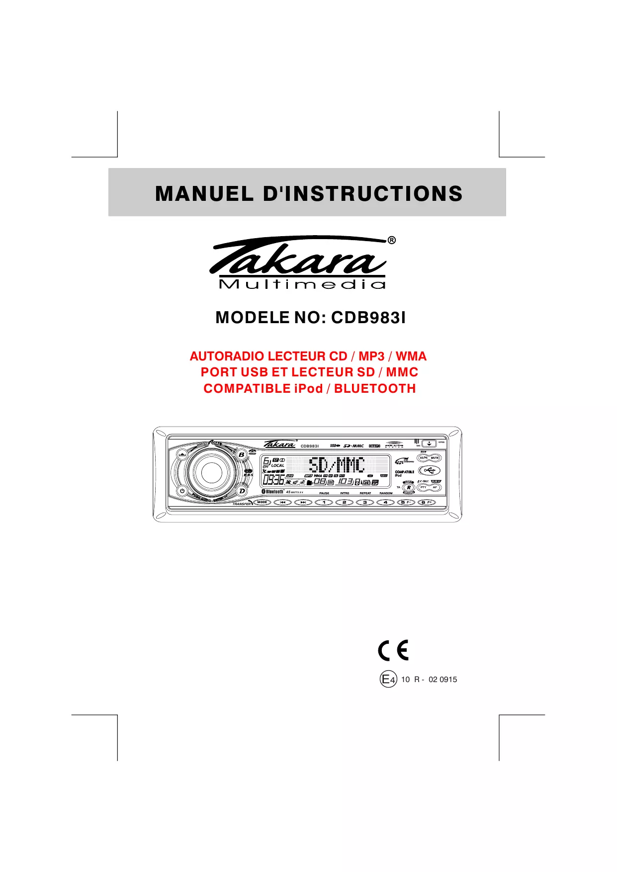 CDB 9831 - Autoradio TAKARA - Notice d'utilisation et mode d'emploi gratuit