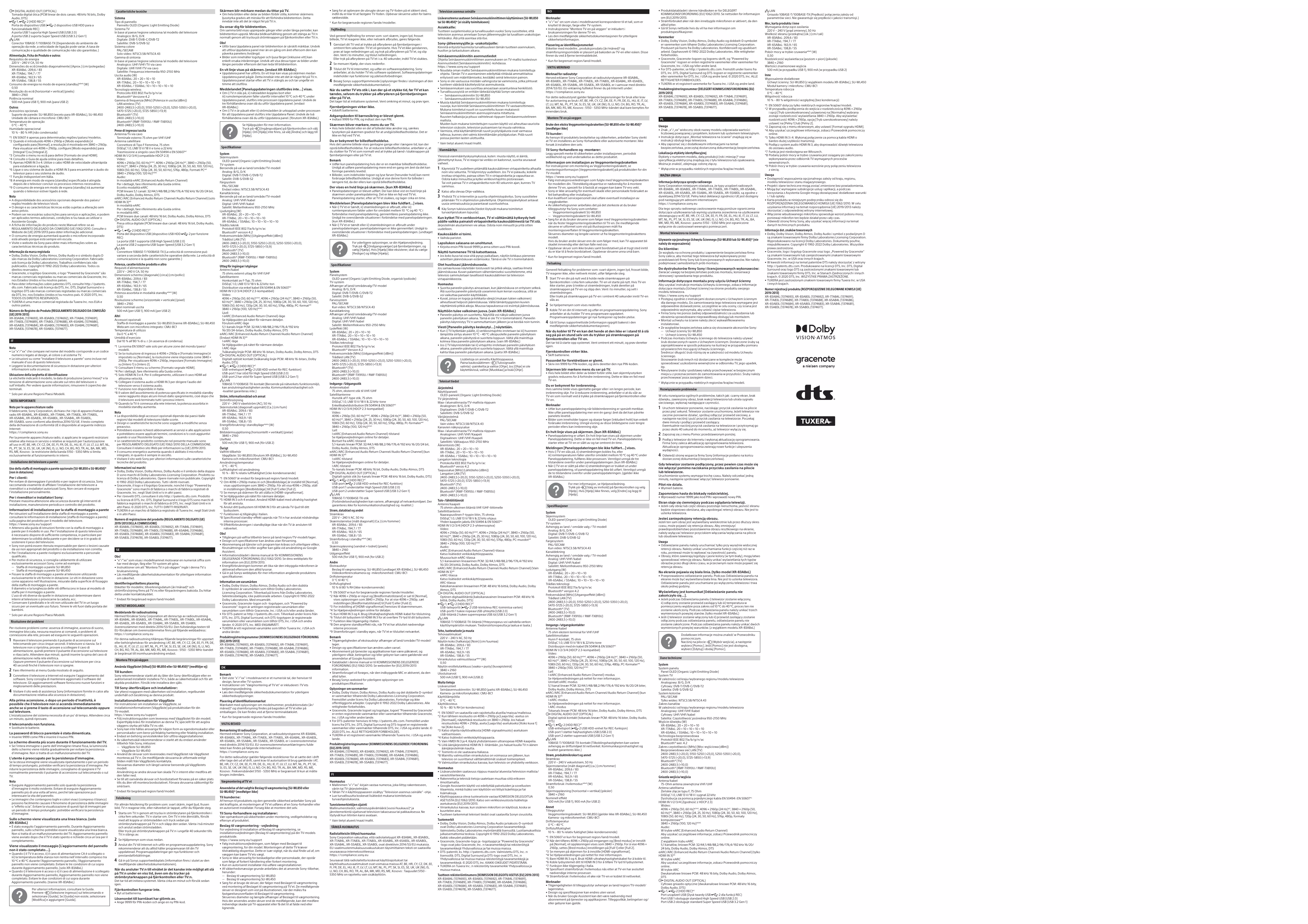 Notice SONY XR-83A8xL - page 1