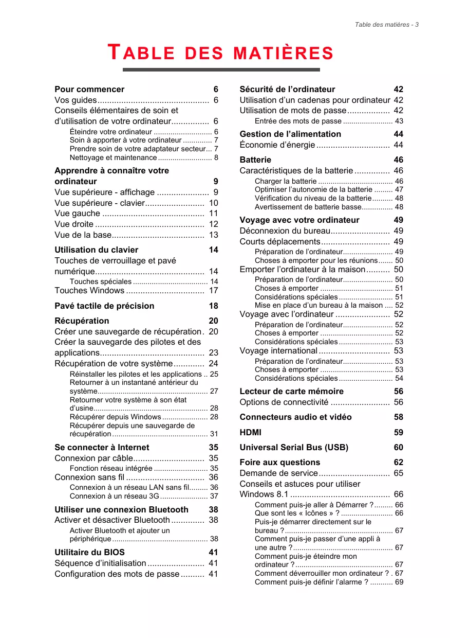 - Conseils élémentaires de soin et d’utilisation de votre ordinateur p. 6