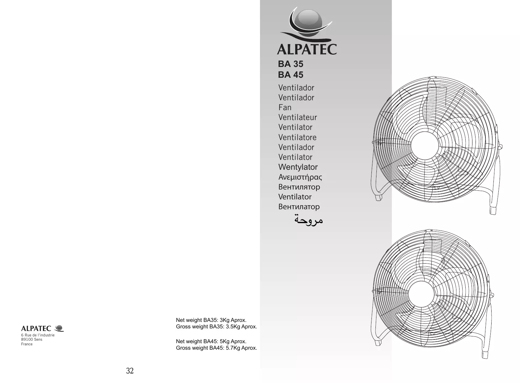 BA 35 - Ventilateur ALPATEC - Notice d'utilisation et mode d'emploi gratuit