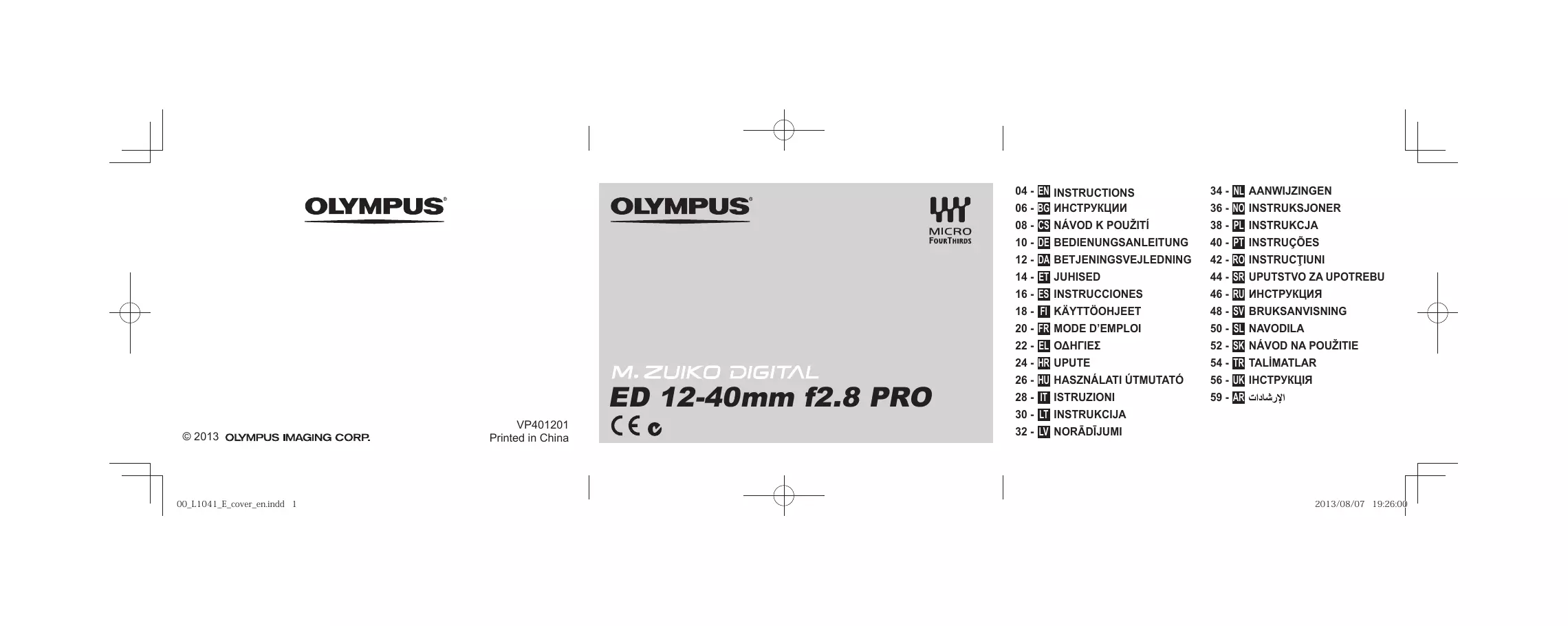MODE D'EMPLOI M.Z DiGiT 12-40 F/2.8 NOIR OLYMPUS
