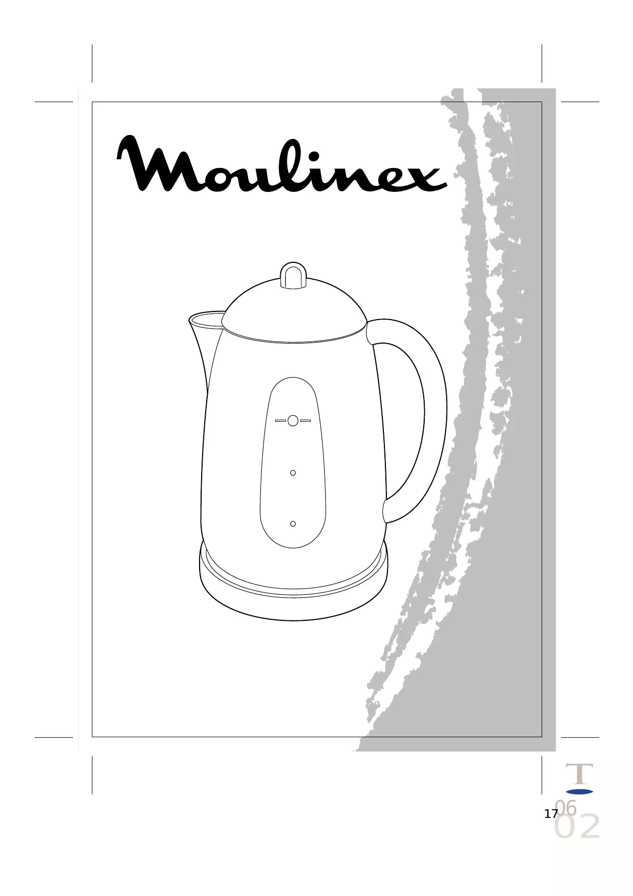 - Toute intervention autre que le nettoyage et l’entretien usuel par le client doit être effectuée par un centre service agréé Moulinex. - La garantie couvre les défauts de fabrication et l’usage domestique uniquement. Toute casse ou détérioration résultant du non respect des instructions d’utilisation n’entre pas dans le cadre de la garantie. - Ne laissez pas l’appareil à portée de mains des enfants. L’utilisation de cet appareill par des enfants ou des personnes handicapées doit être faite sous surveillance. - Ne déplacez jamais la bouilloire lorsqu’elle est en fonctionnement. - N’utilisez pas la bouilloire lorsque vous avez les mains mouillées ou les pieds nus. Français Nous vous remercions d’avoir choisi un appareil de la gamme Moulinex qui est exclusivement prévu pour chauffer de l’eau. Conseils de sécurité - N’utilisez votre bouilloire que pour faire chauffer de l’eau potable. - Placer la bouilloire et son cordon bien à l’arrière du plan de travail. - Eloignez la bouilloire et le câble d’alimentation de toute source de chaleur, de toute surface mouillée ou glissante, d’angles vifs. - Ne pas remplir au-dessus du niveau maxi ni en-dessous du niveau mini. Si la bouilloire est trop remplie, de l’eau bouillante peut-être éjectée. - Ne pas ouvrir le couvercle lorsque l’eau bout. - Vérifiez que l’installation électrique est conforme aux normes en vigueur et compatible avec la puissance et la tension indiquée sous votre modèle. - Ne branchez la bouilloire que sur une prise terre incorporée. Toute erreur de branchement annule la garantie. - Votre bouilloire ne doit être utilisée qu’avec le couvercle verrouillé et le socle qui lui est associé. (cas des bouilloires avec socle). - L’emploi de prises multiples et/ou rallonges est déconseillé. - Ne mettez pas l’appareil, le socle, le câble d’alimentation ou la fiche dans l’eau ou tout autre liquide. - Ne pas utiliser de tampons abrasifs pour le nettoyage. - Pour enlever le filtre anti-tartre, retirez la bouilloire de son socle et laissez refroidir l’appareil. N’enlevez jamais le filtre quand l’appareil est rempli d’eau chaude. - Notre garantie exclut les bouilloires qui ne fonctionnent pas ou mal du fait de l’absence de détartrage. - Ne jamais utiliser une autre méthode de détartrage que celle préconisée. - N’utilisez pas la bouilloire si le câble d’alimentation ou la fiche sont endommagés. Afin d’éviter tout danger, faites-les obligatoirement remplacer par un centre service agréé Moulinex. - N’utilisez pas l’appareil s’il ne fonctionne pas correctement ou si il a été endommagé. Ne démontez la bouilloire sous aucun prétexte. Utilisation