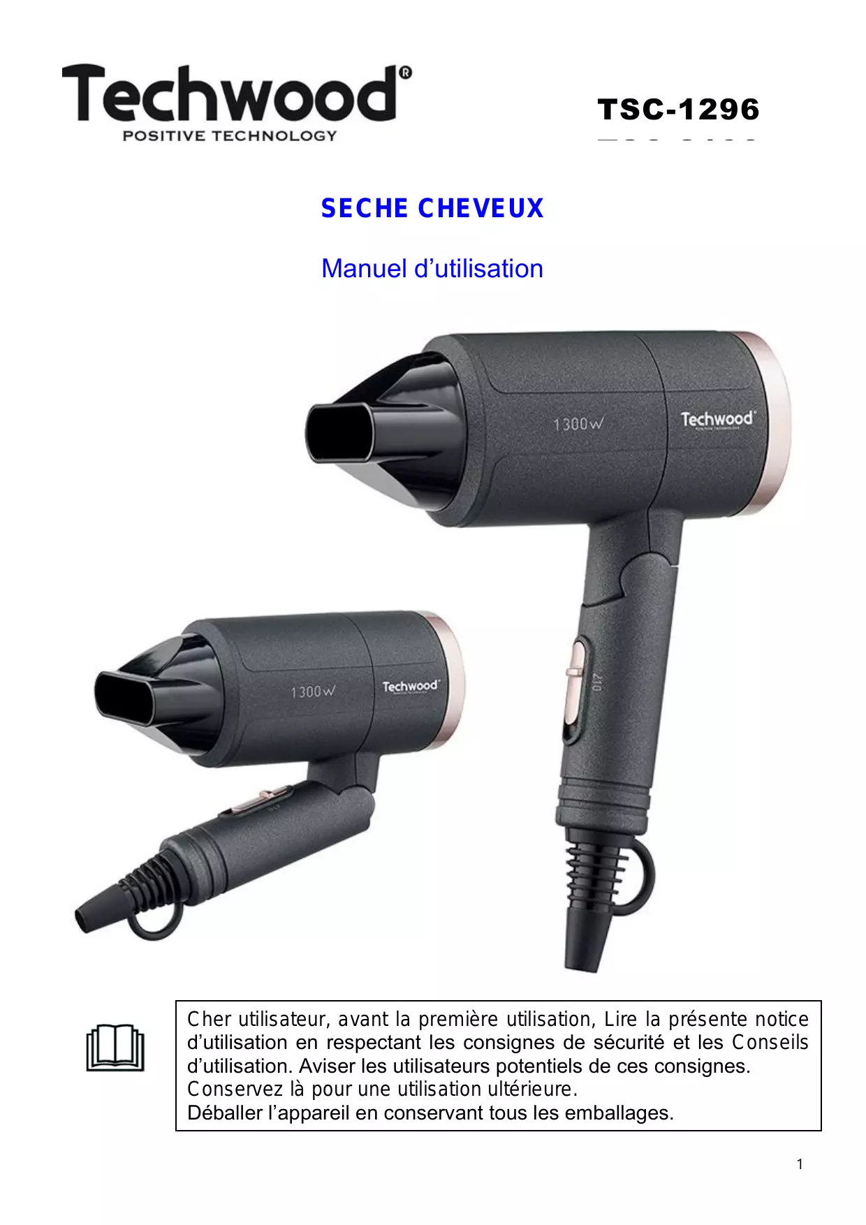 TSC-1296 - Sèche cheveux TECHWOOD - Notice d'utilisation et mode d'emploi gratuit