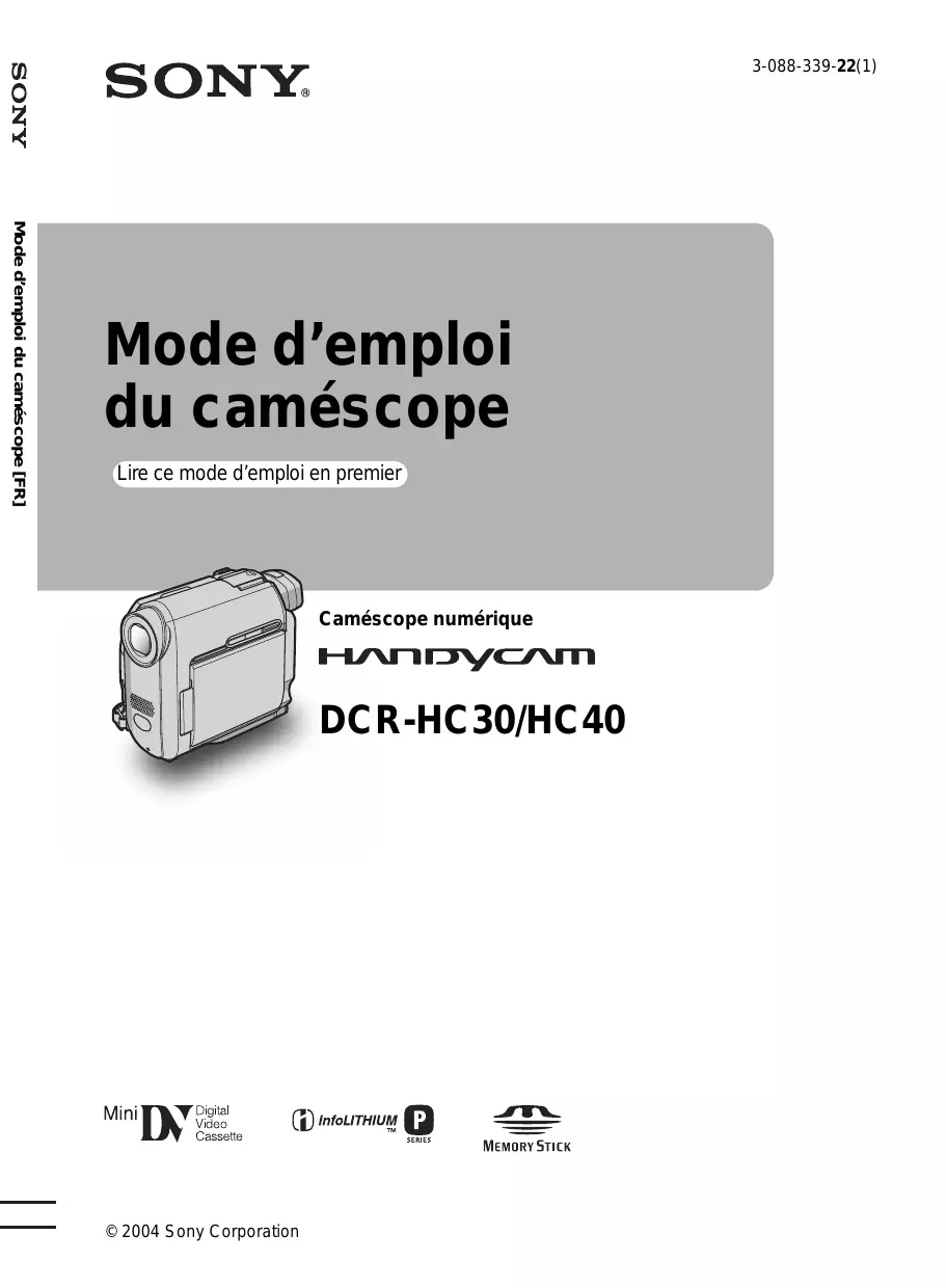 HC-40 - Caméscope SONY - Notice d'utilisation et mode d'emploi gratuit