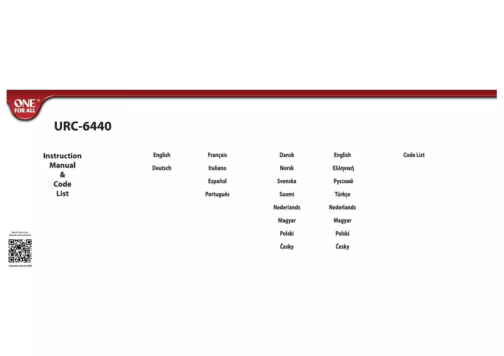 Les codes pour les appareils sont disponibles dans le manuel d'utilisation de la télécommande ou sur le site web de ONE FOR ALL. Vous pouvez également utiliser la fonction de recherche automatique des codes.