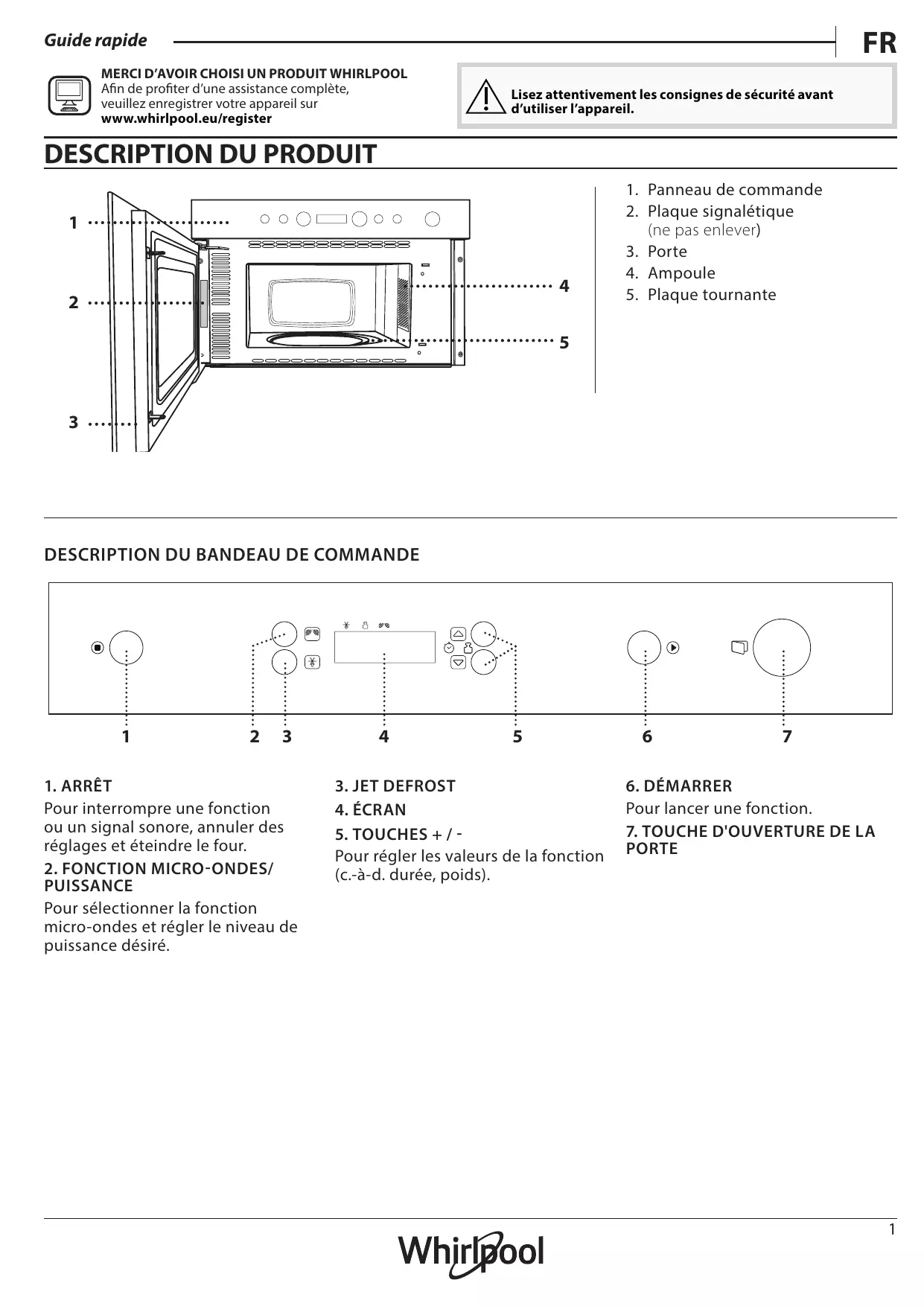 • En visitant notre site Internet docs.whirlpool.eu • En utilisant le code QR • Vous pouvez également contacter notre service après-vente (voir numéro de téléphone dans le livret de garantie). Lorsque vous contactez notre Service après-vente, veuillez indiquer les codes figurant sur la plaque signalétique de l’appareil.