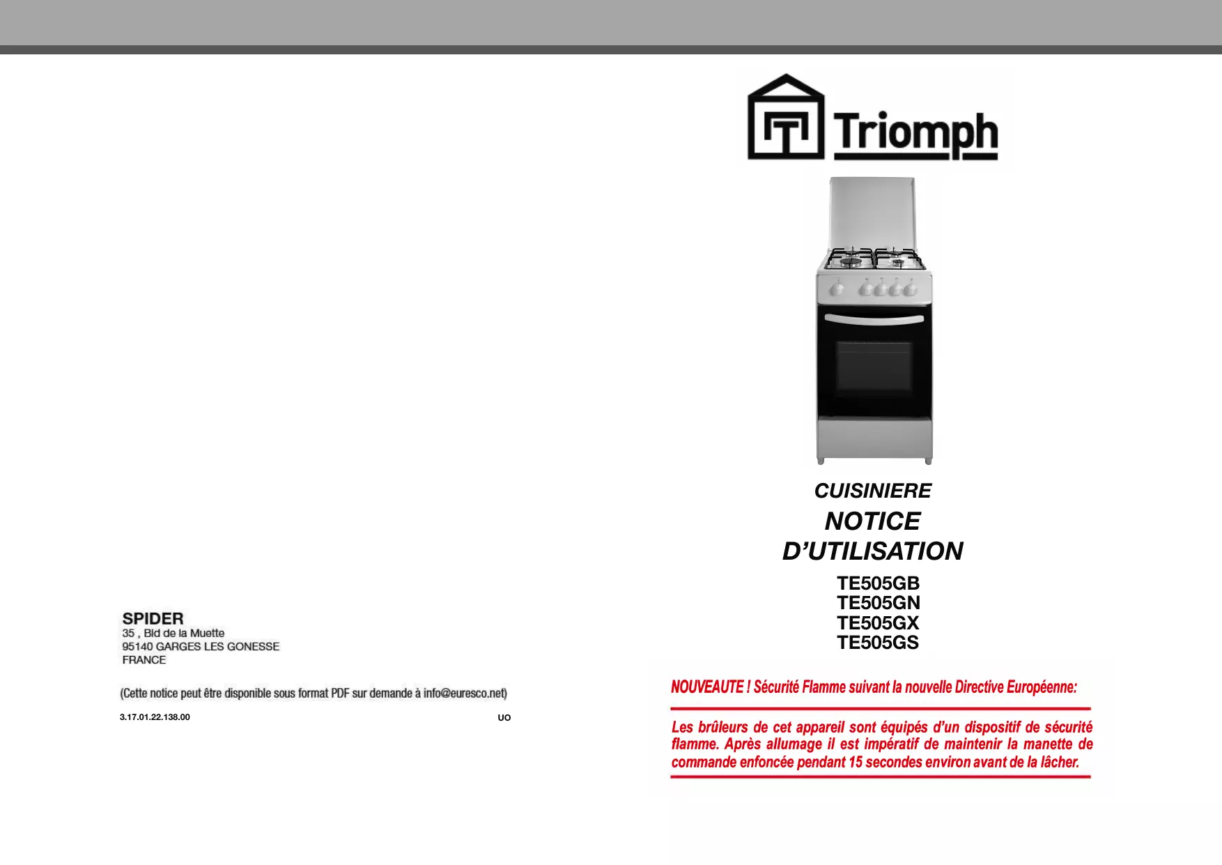 TE505GB - Gaziniere TRIOMPH - Notice d'utilisation et mode d'emploi gratuit