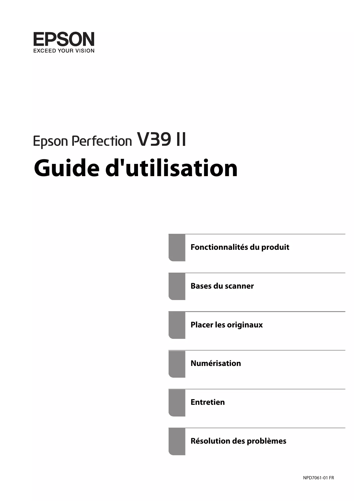 PerfectionV39II - Scanner EPSON - Notice d'utilisation et mode d'emploi gratuit