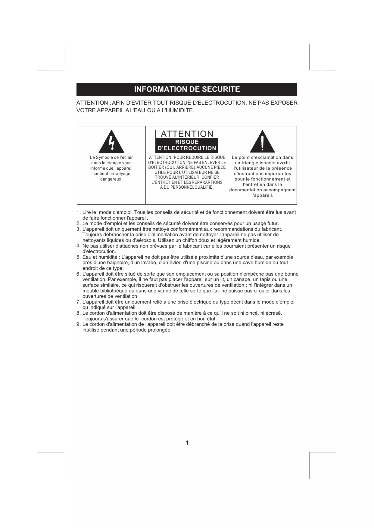 - Lire le mode d'emploi. Tous les conseils de sécurité et de fonctionnement doivent être lus avant de faire fonctionner l'appareil.