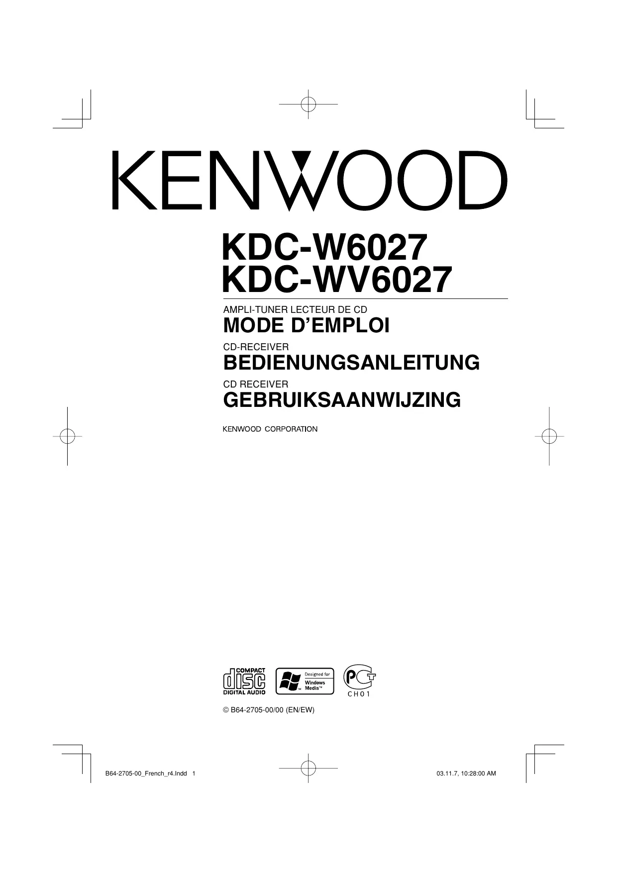 Retrouvez gratuitement la notice de l'appareil KDCW6027 KENWOOD au format PDF.