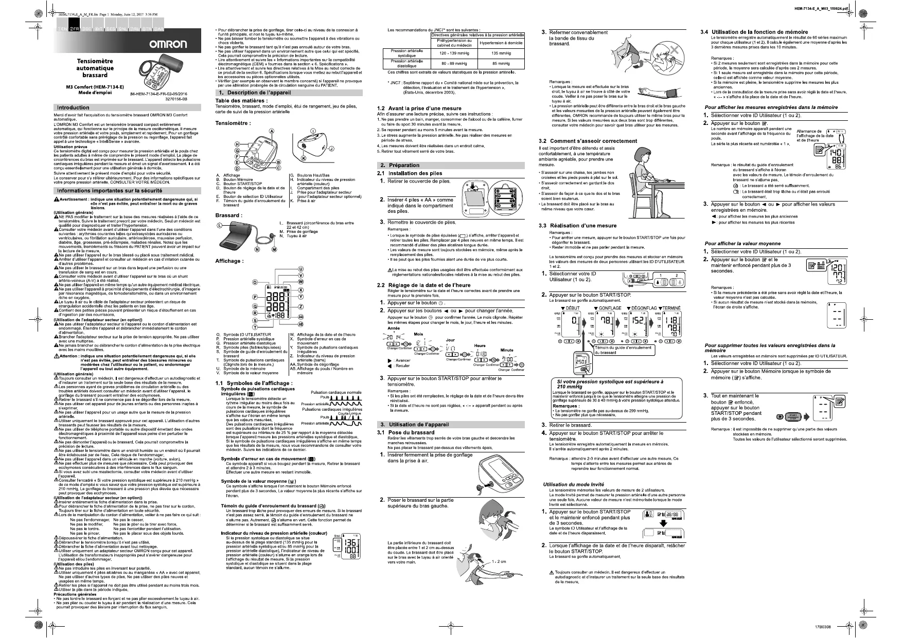 OMH7134E - Tensiomètre électronique OMRON - Notice d'utilisation et mode d'emploi gratuit