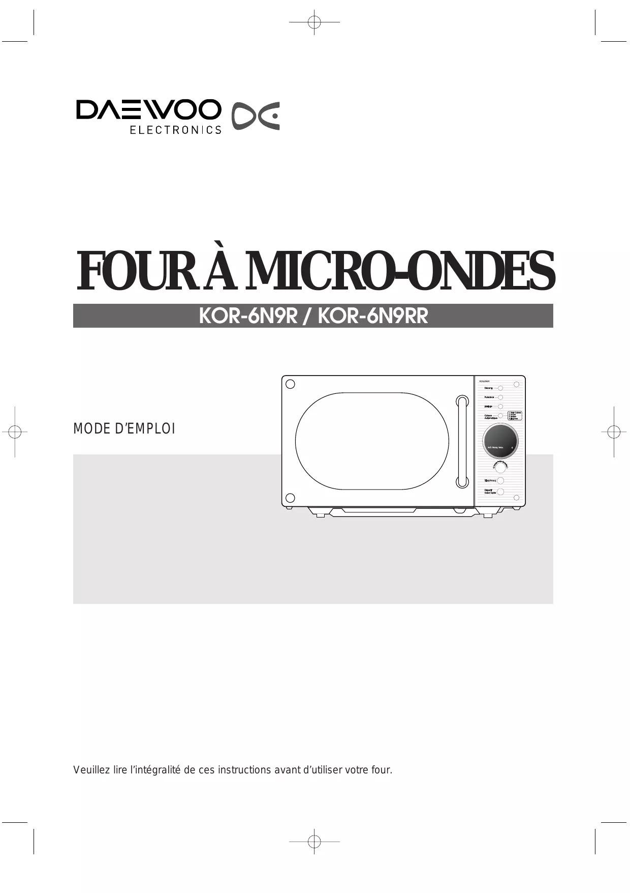 KOR-6NRBNOIR - Four à micro-ondes DAEWOO - Notice d'utilisation et mode d'emploi gratuit