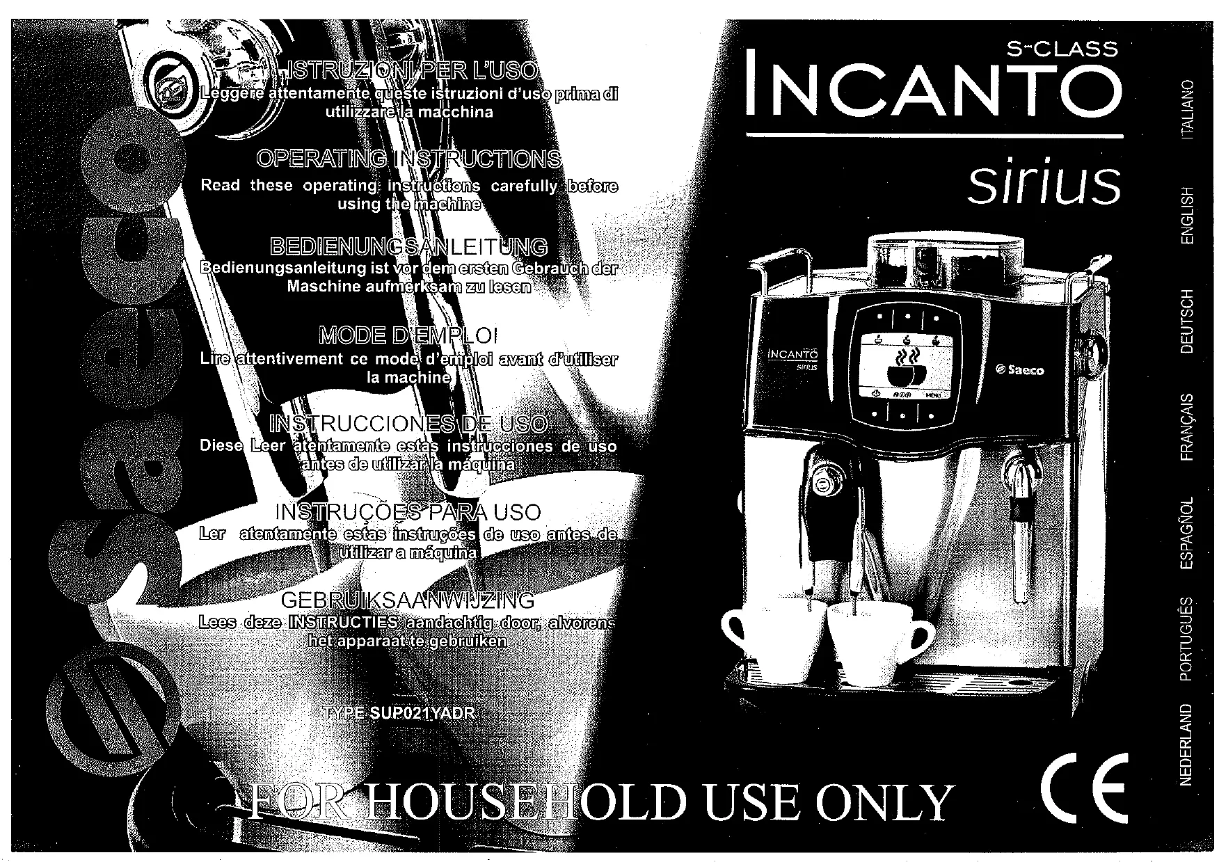 Retrouvez gratuitement la notice de l'appareil INCANTO SCLASS SIRIUS SAECO au format PDF.