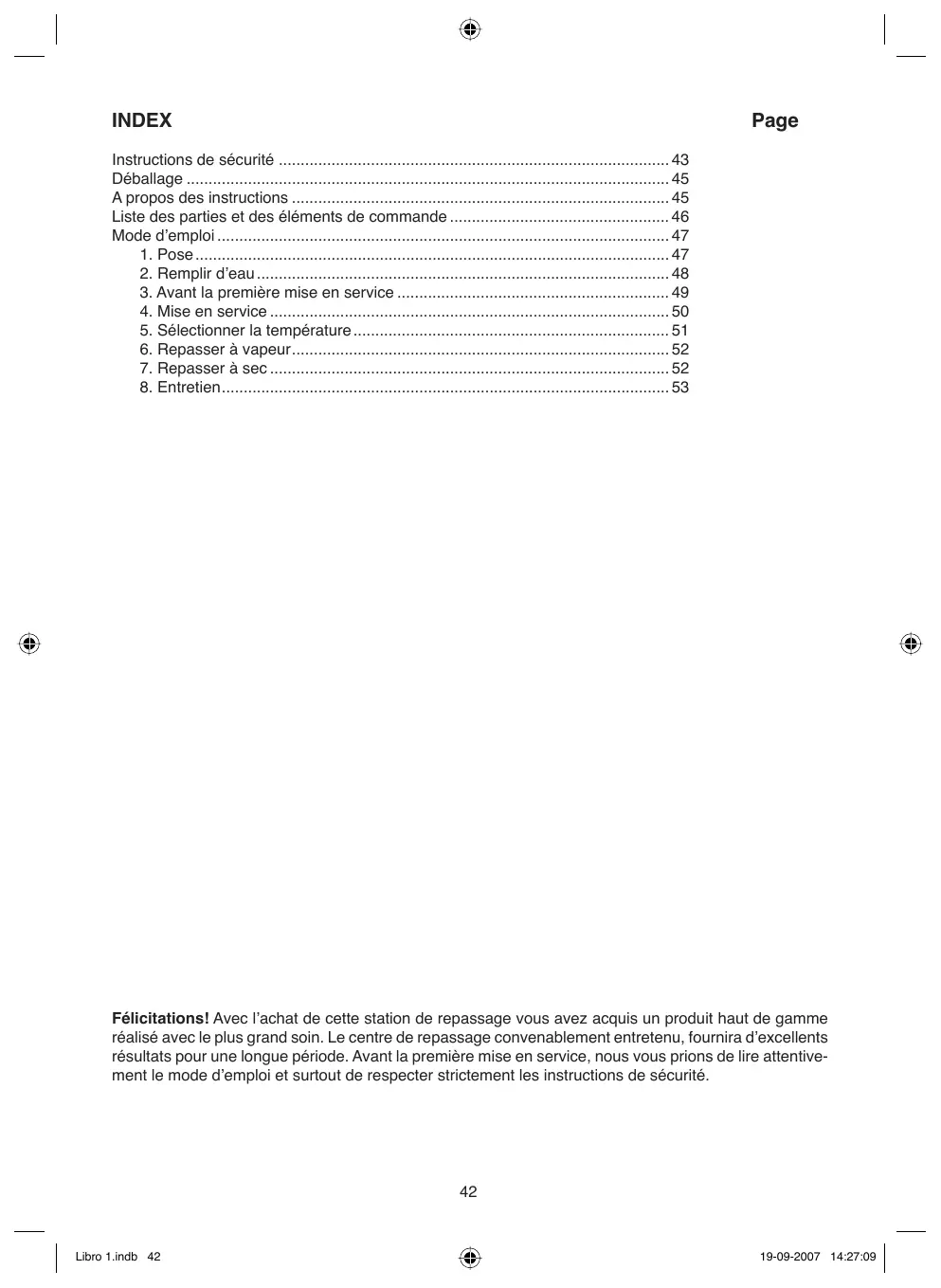 Félicitations ! Avec l'achat de cette station de repassage, vous avez acquis un produit haut de gamme réalisé avec le plus grand soin. Le centre de repassage convenablement entretenu fournira d'excellents résultats pour une longue période. Avant la première mise en service, nous vous prions de lire attentivement le mode d'emploi et de respecter strictement les instructions de sécurité.