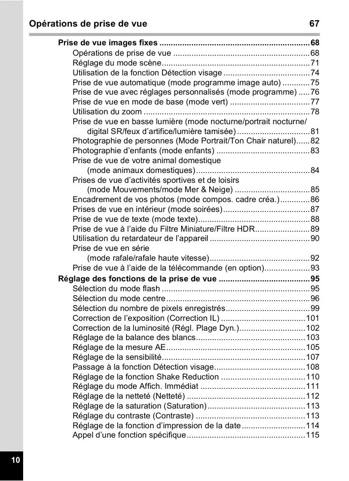 - Correction de la luminosité (Régl. Plage Dyn.) p. 102