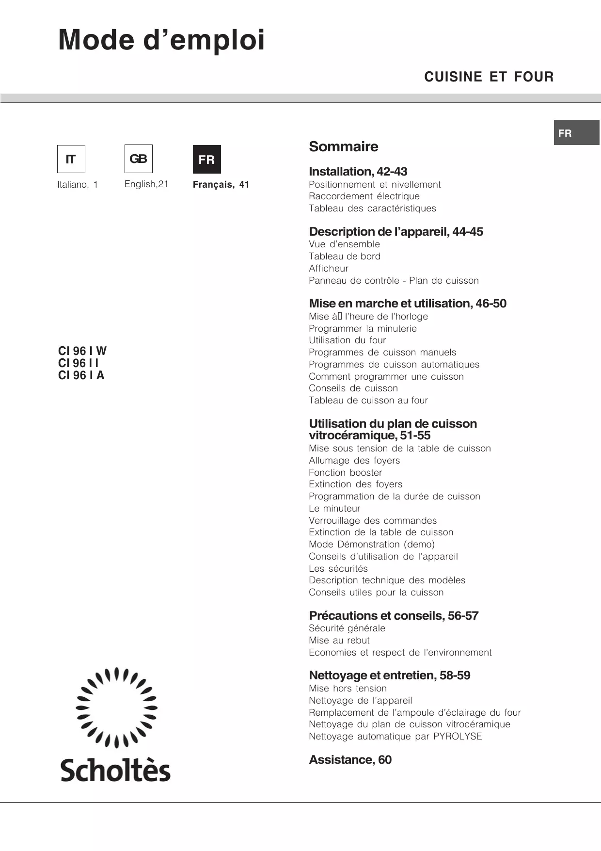CI 96IA ANTH - Four SCHOLTES - Notice d'utilisation et mode d'emploi gratuit