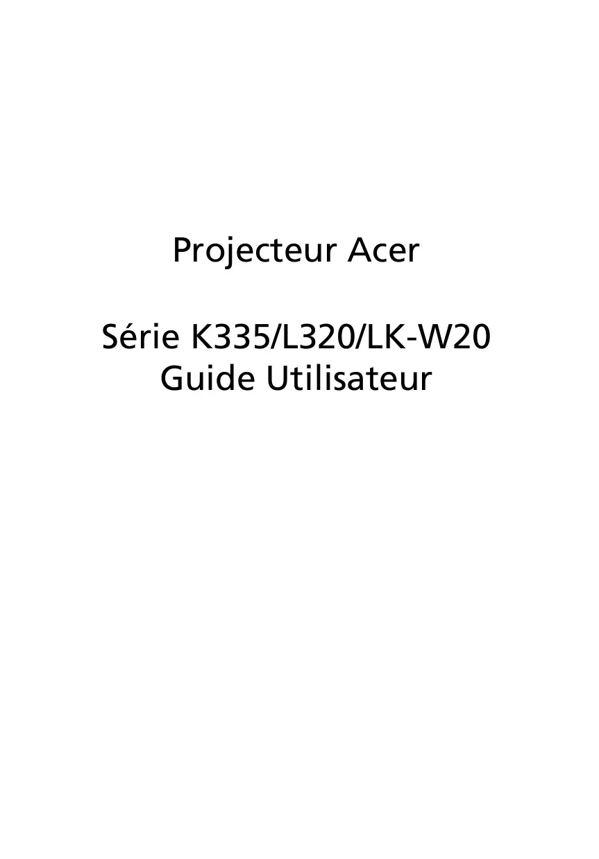 Projecteur Acer Série K335/L320/LK-W20 Guide Utilisateur