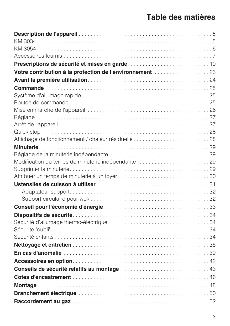 KM3054 - Table_de_cuisson_gaz MIELE - Notice d'utilisation et mode d'emploi gratuit