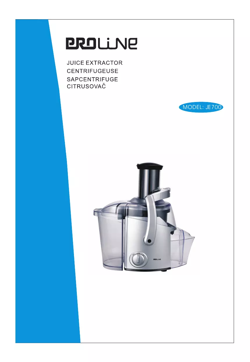 JE700 - Extracteur de jus PROLINE - Notice d'utilisation et mode d'emploi gratuit