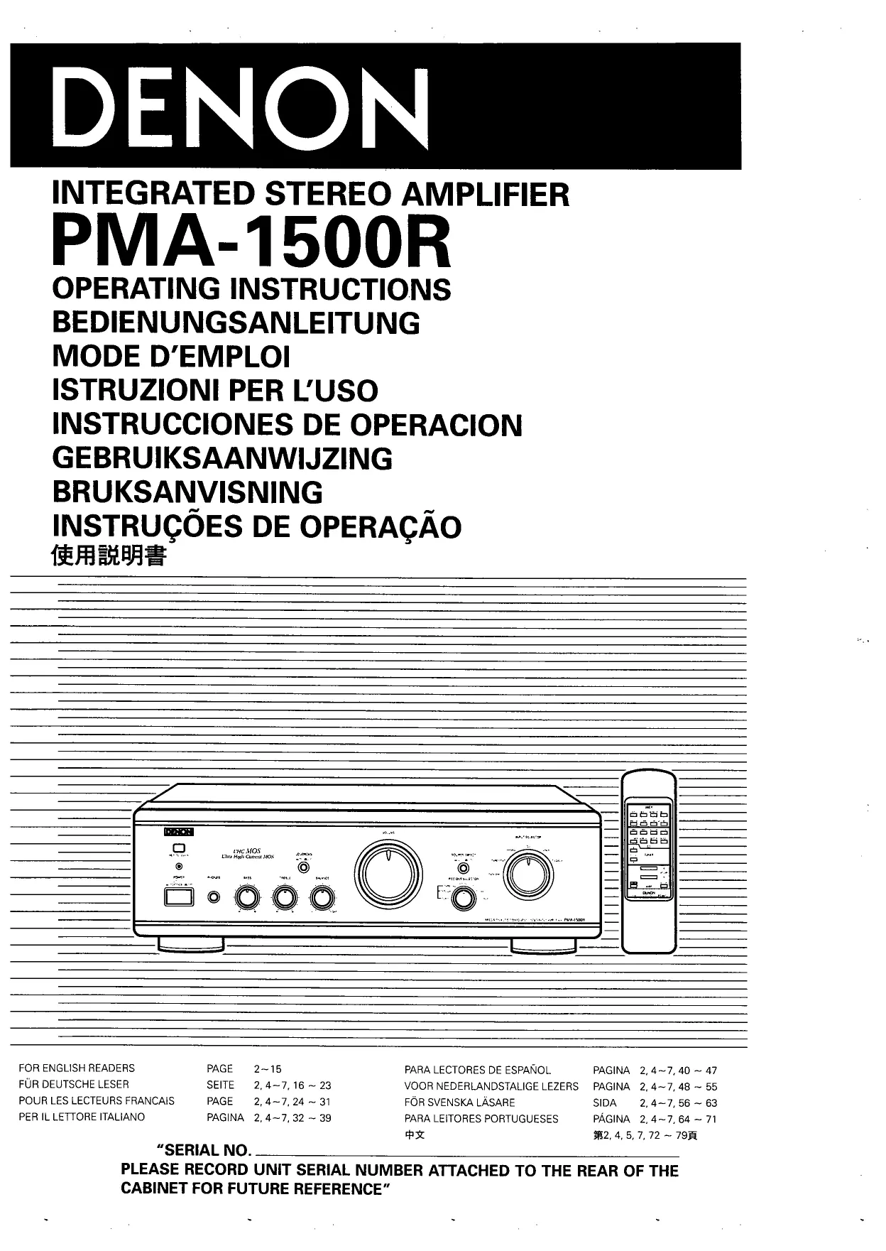 Retrouvez gratuitement la notice de l'appareil PMA1502 DENON au format PDF.