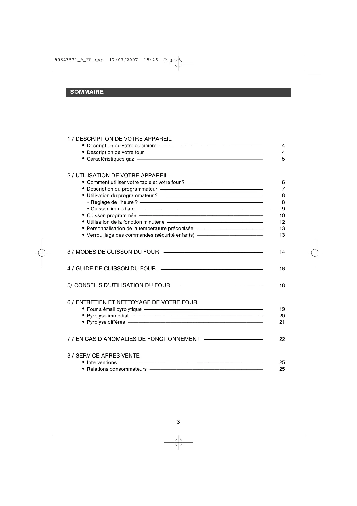 - Avant de débuter la pyrolyse, retirez tous les accessoires à l’intérieur du four, y compris la casserolerie. Les éclaboussures excessives doivent être enlevées avant le nettoyage afin d’éviter le risque d’inflammation ou une production excessive de fumée. - Pendant la pyrolyse, les surfaces peuvent devenir plus chaudes qu’en usage normal. Il est recommandé d’éloigner les jeunes enfants. - Quel que soit le type de four, n’entreposez jamais de produits inflammables (chiffons, papiers, produits d’entretien, notices, etc...) dans le coffre à casserolerie de votre cuisinière ; vous risqueriez de provoquer un incendie dont nous ne saurions, en aucun cas, être tenus pour responsables. - Ne recouvrez pas l’intérieur du four de papier aluminium pour économiser un nettoyage : en provoquant une surchauffe, vous endommageriez l’émail. - en ouvrant la porte, après pyrolyse, on constate sur les parois du four le dépôt de quelques résidus blanchâtres. Lorsque le four est complétement refroidi, il suffit de passer une éponge humide pour les éliminer. - Afin de limiter les projections excessives lors de la cuisson, vérifiez : - la bonne position conseillée dans votre notice d’utilisation. - la bonne hauteur de gradin - la bonne température Si malgré tout, la grosse pièce de viande provoque des projections et fumées, réduisez la puissance du four.