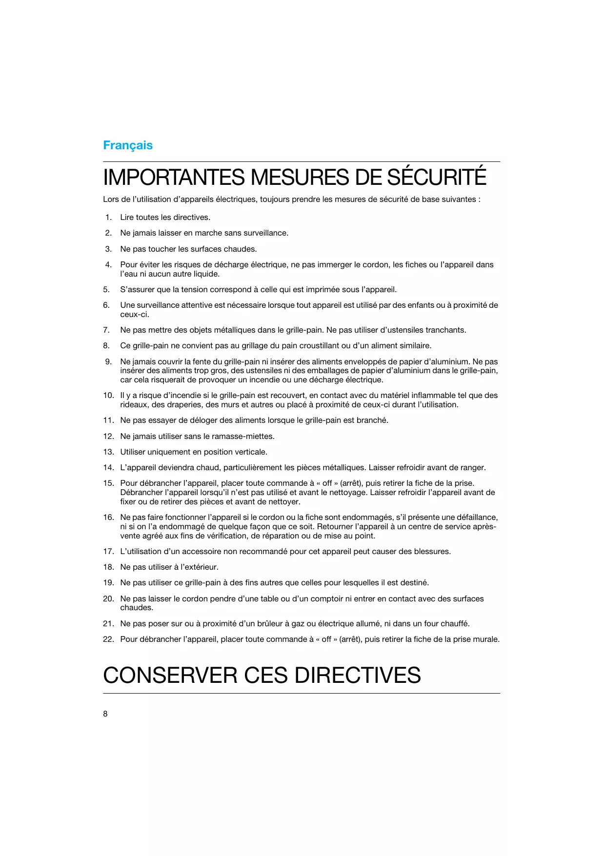 19. Ne pas utiliser ce grille-pain à des fins autres que celles pour lesquelles il est destiné.