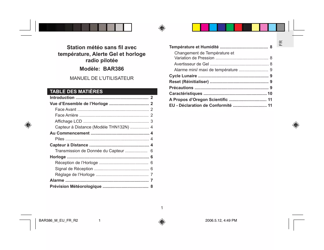 Retrouvez gratuitement la notice de l'appareil BAR386N OREGON SCIENTIFIC au format PDF.
