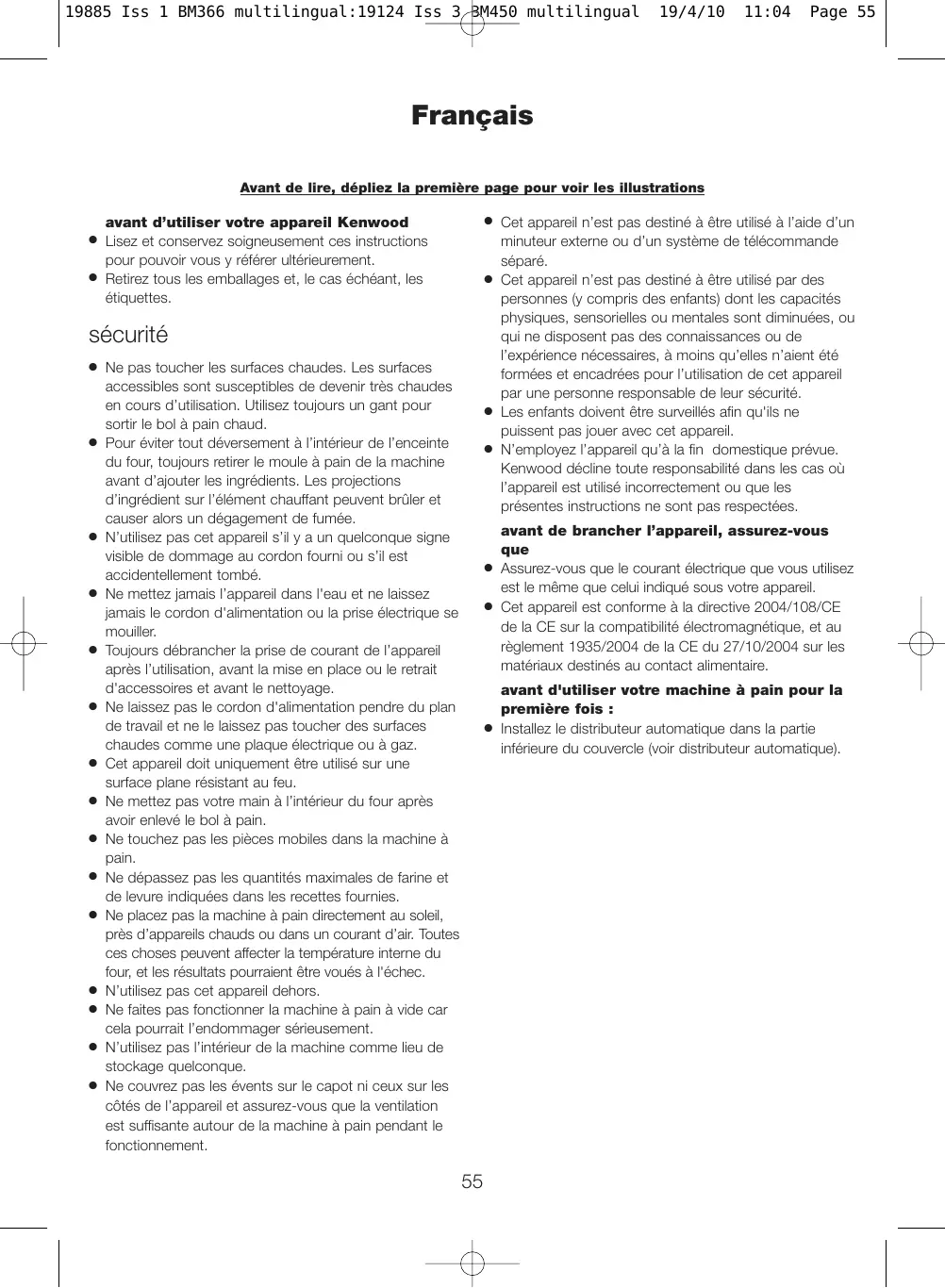 11:04 750g Page 6 1kg 19885 Iss 1 BM366 multilingual:19124 Iss 3 BM450 multilingual 19/4/10 11:04 Page 55 Français Avant de lire, dépliez la première page pour voir les illustrations