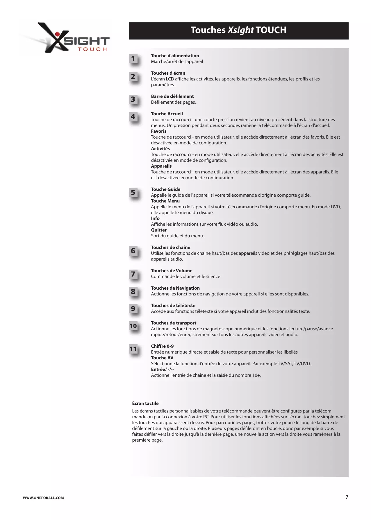 - Touches de la Xsight TOUCH p. 6