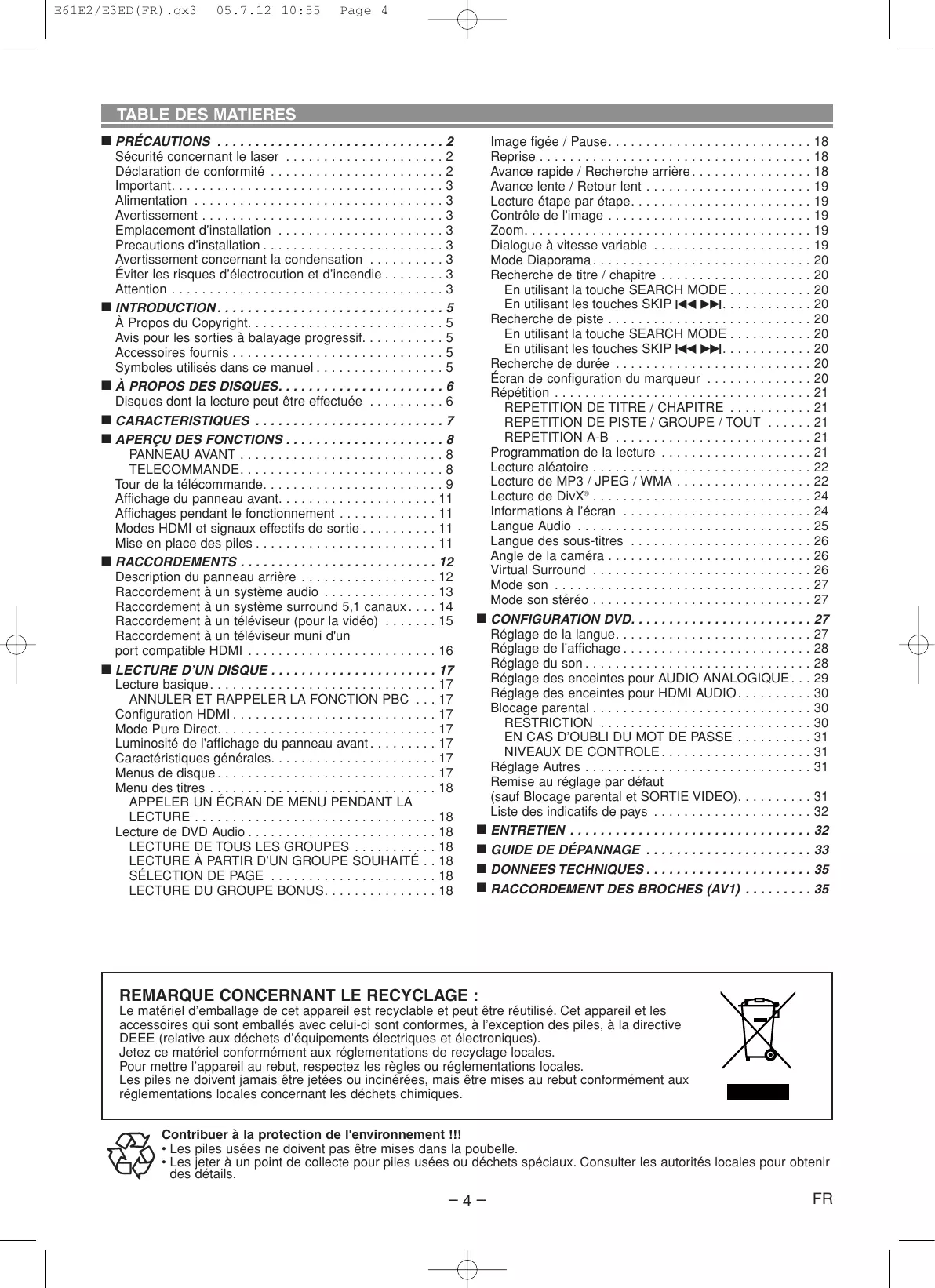 DVD-V DVD-A VCD Pour commencer