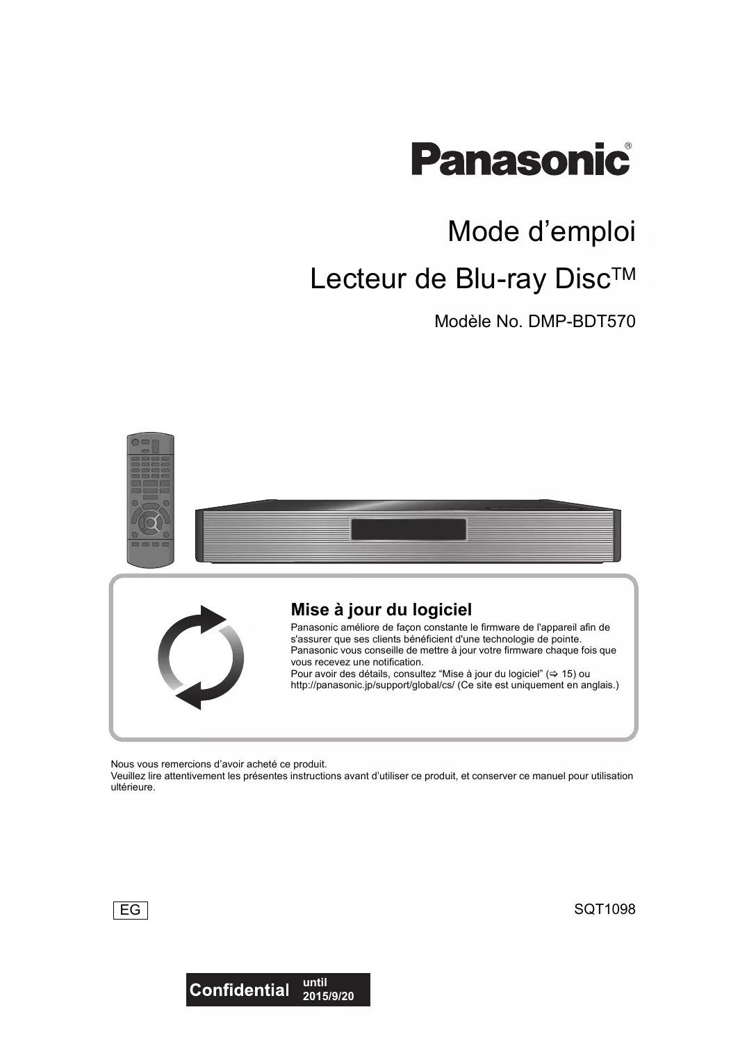 DMP-BDT570EG - Lecteur blu-ray PANASONIC - Notice d'utilisation et mode d'emploi gratuit