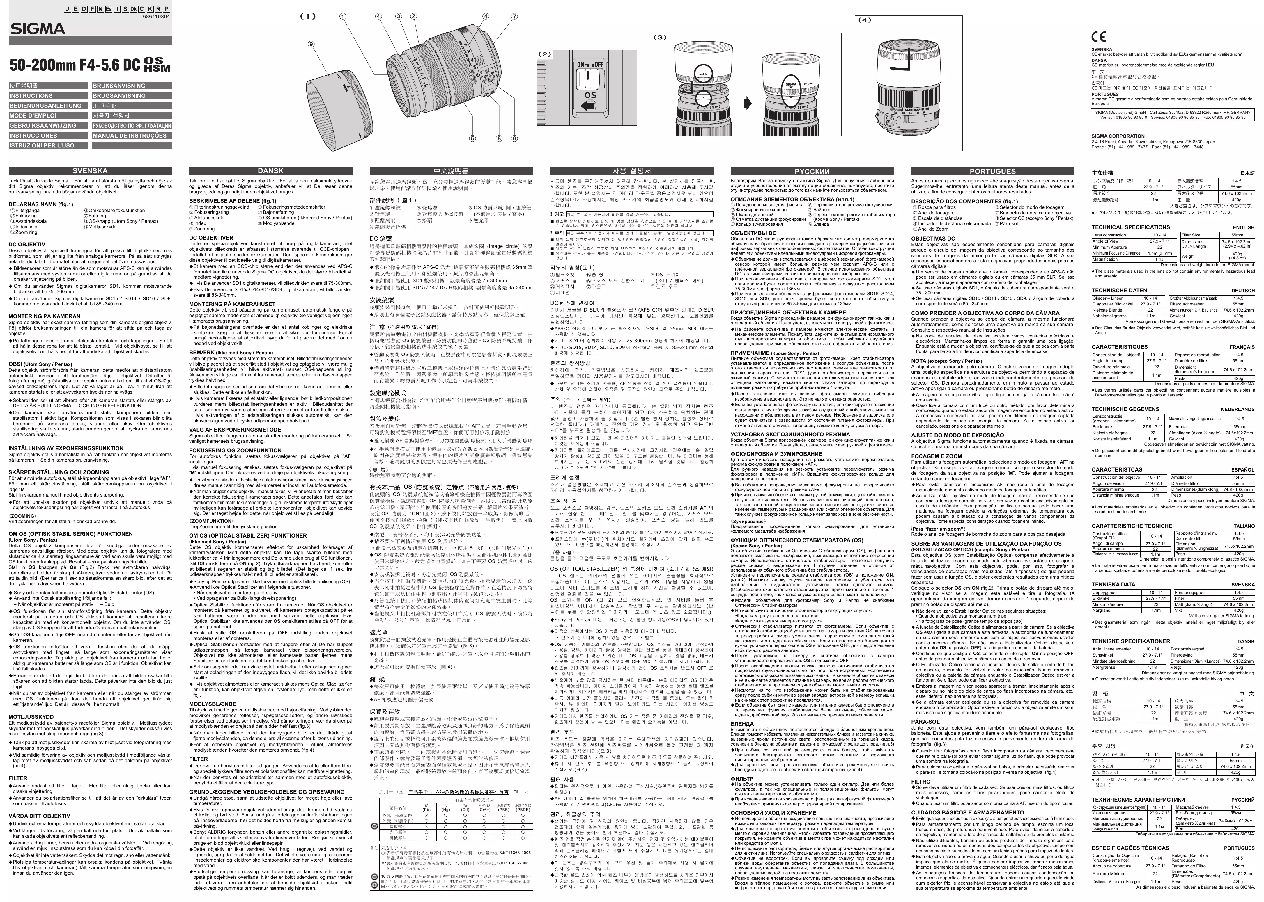 MODE D'EMPLOI 18-200 F3,5-6,3IIOSC SIGMA