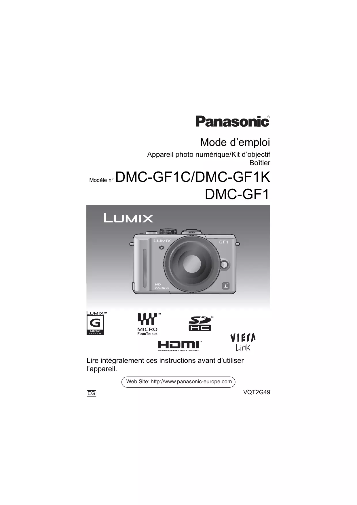 Lire intégralement ces instructions avant d’utiliser l’appareil. Web Site: http://www.panasonic-europe.com