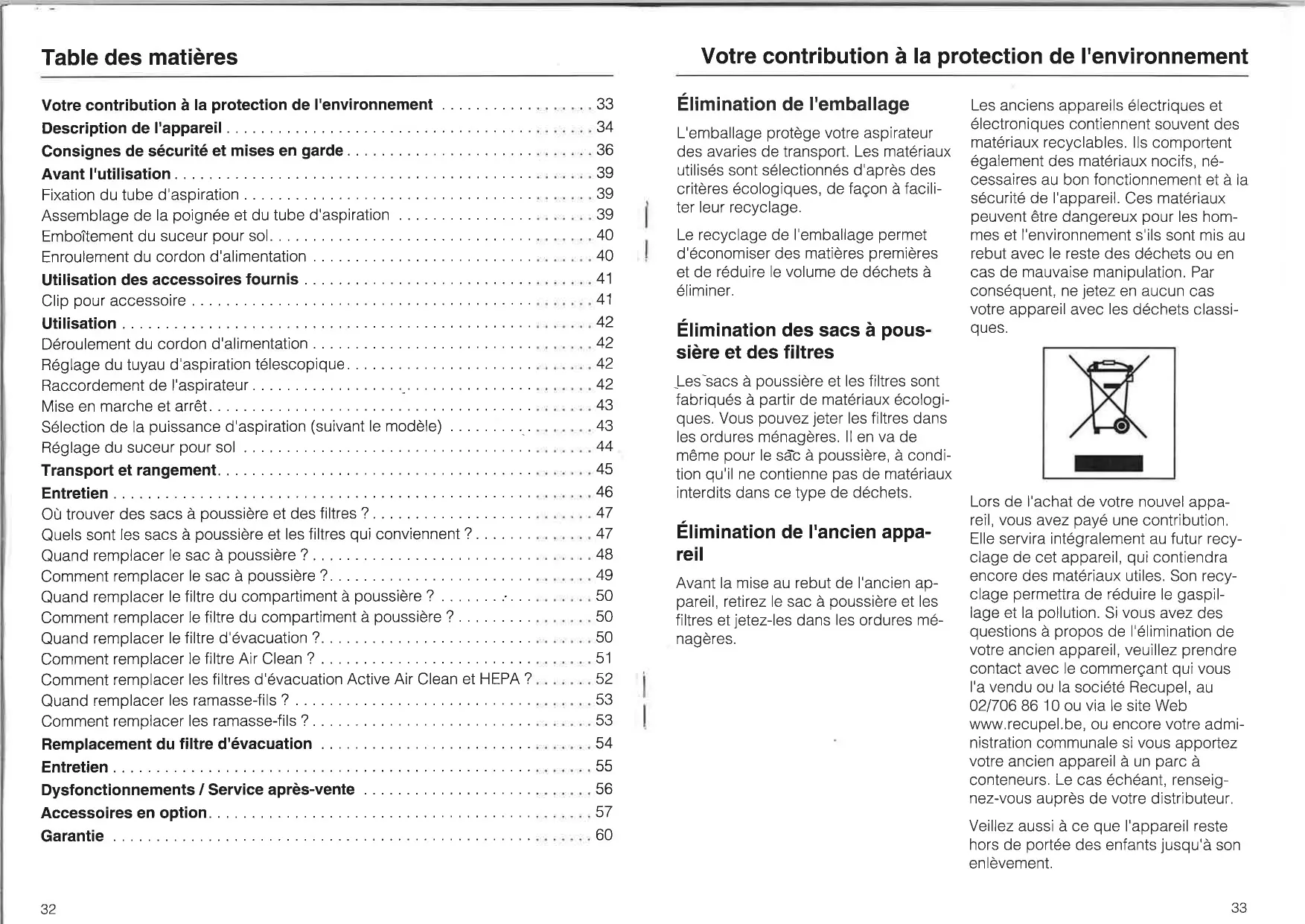 | Élimination ancien appareil | Recyclage de l'ancien appareil électrique |