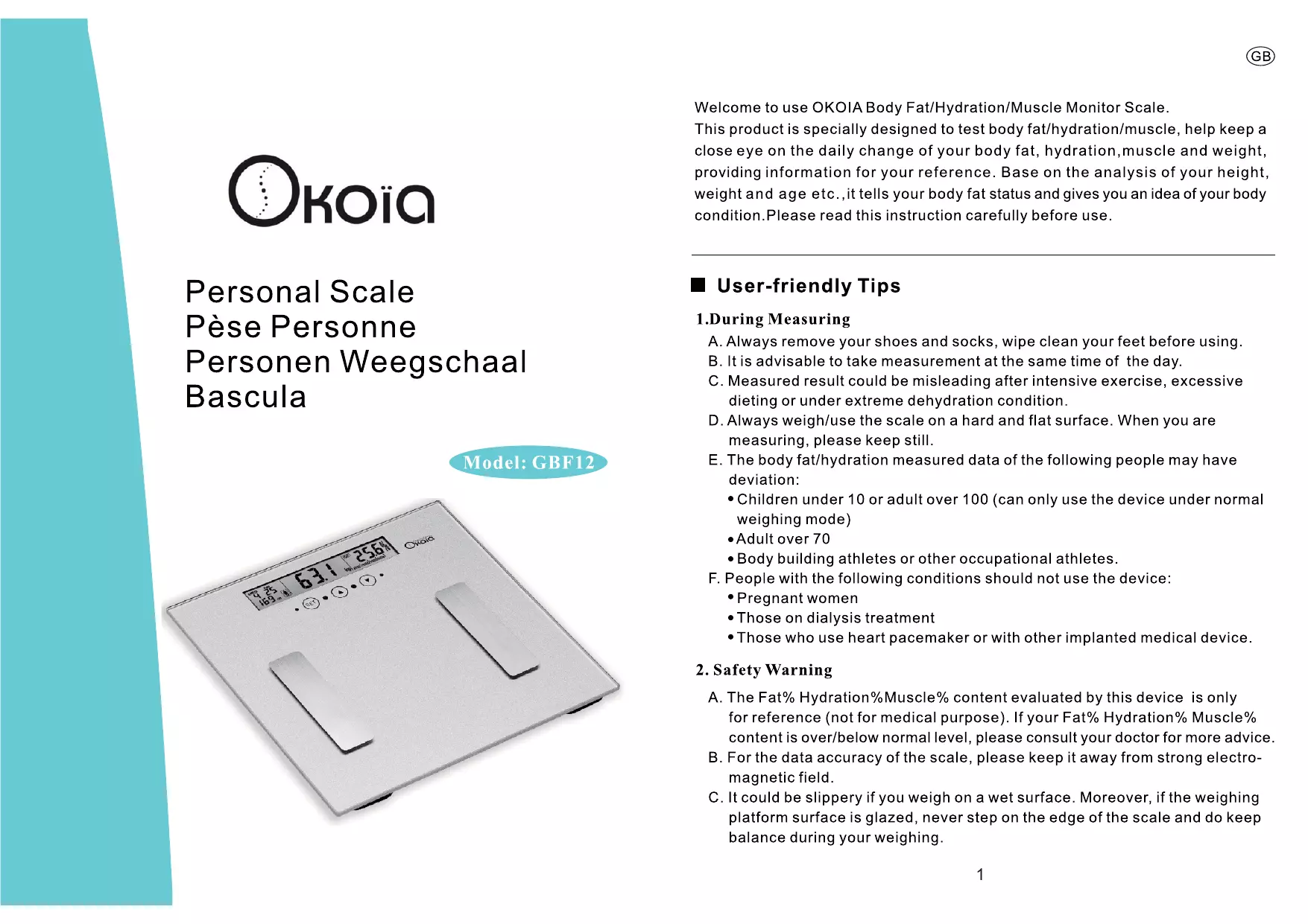 GBF 12 - Pèse-personne OKOTA - Notice d'utilisation et mode d'emploi gratuit