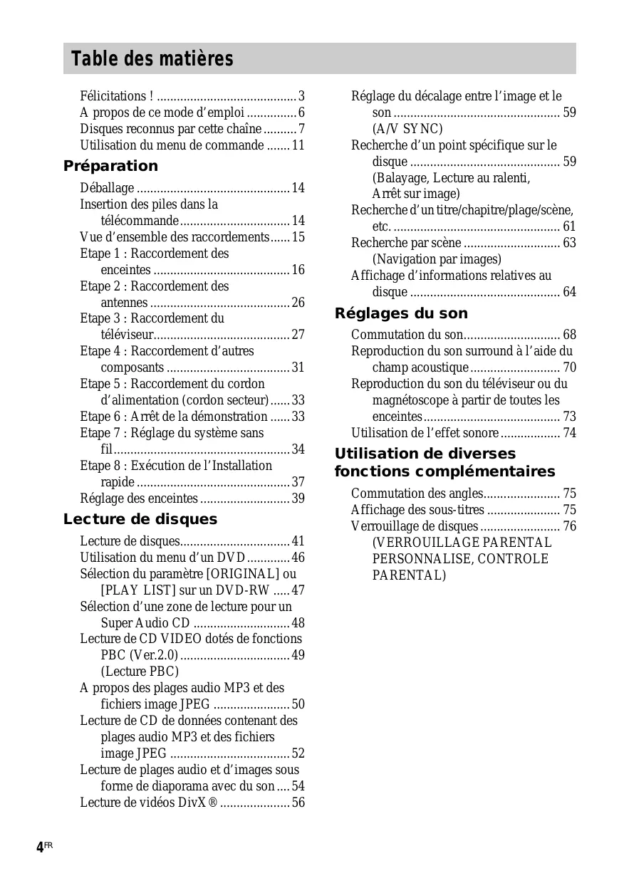 Réglage du décalage entre l'image et le son 59 (A/V SYNC)