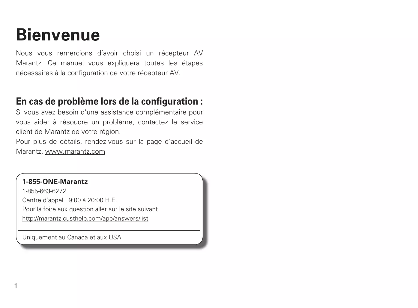 Nous vous remercions d’avoir choisi un récepteur AV Marantz. Ce manuel vous expliquera toutes les étapes nécessaires à la configuration de votre récepteur AV.