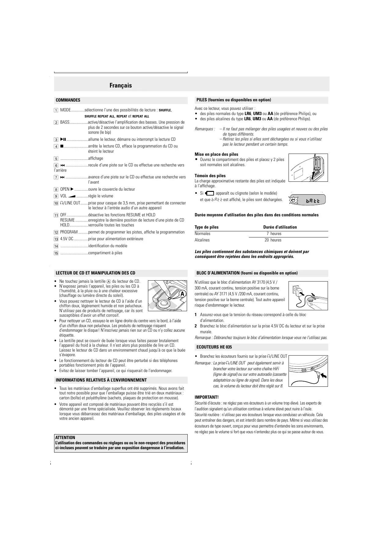 1100ax - Lecteur CD portable PHILIPS - Notice d'utilisation et mode d'emploi gratuit