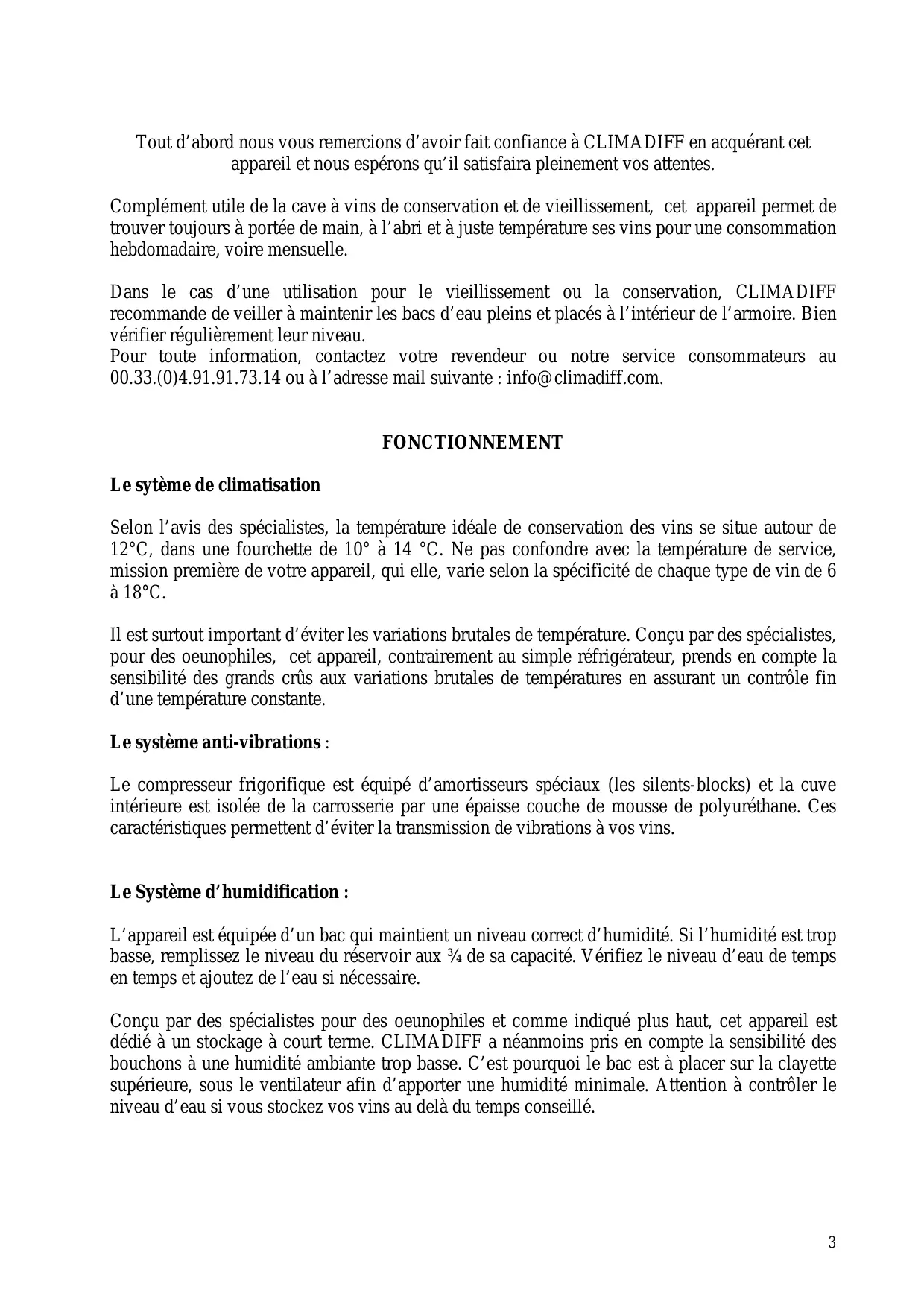 Tout d'abord nous vous remercions d'avoir fait confiance à CLIMADIFF en acquérant cet apparéil et nous espérons qu'il satisfaira pleinement vos attentes.