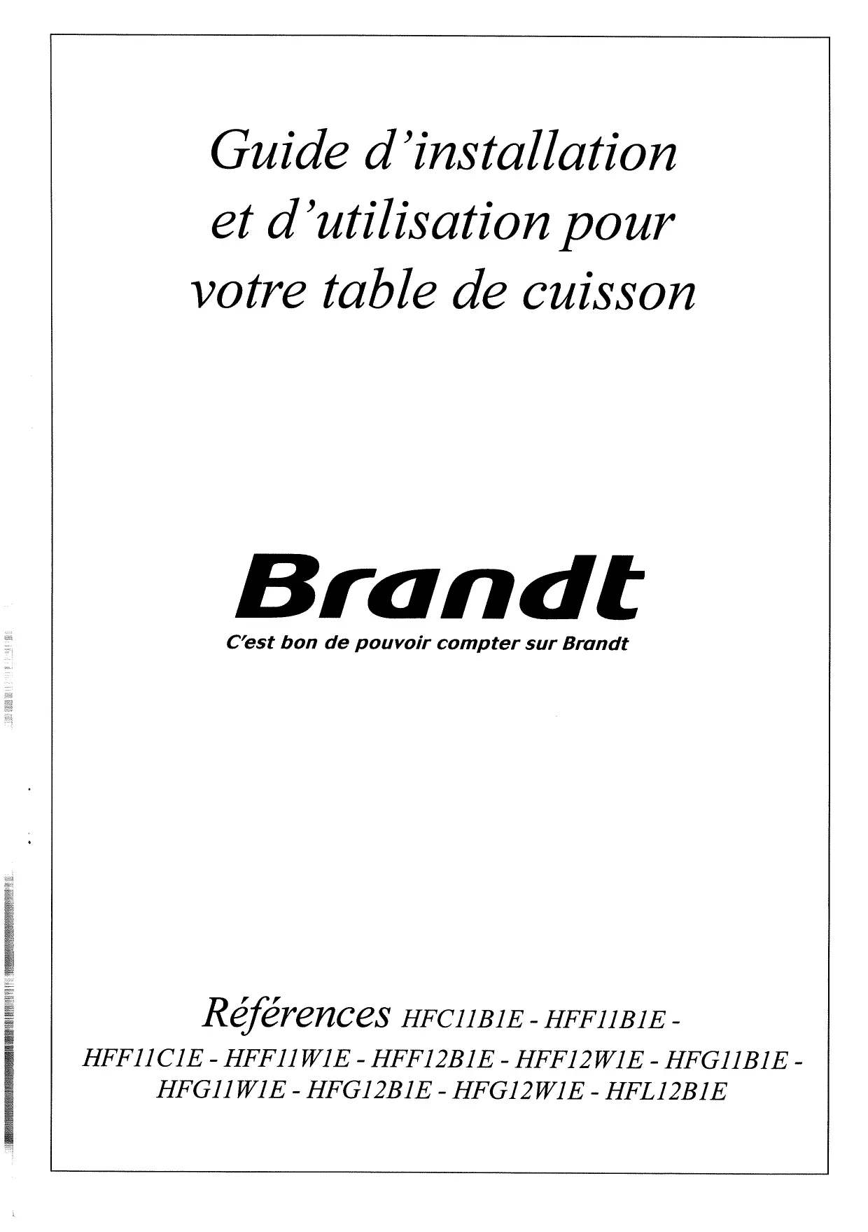 HF F11.W1E BLANC - Table de cuisson BRANDT - Notice d'utilisation et mode d'emploi gratuit