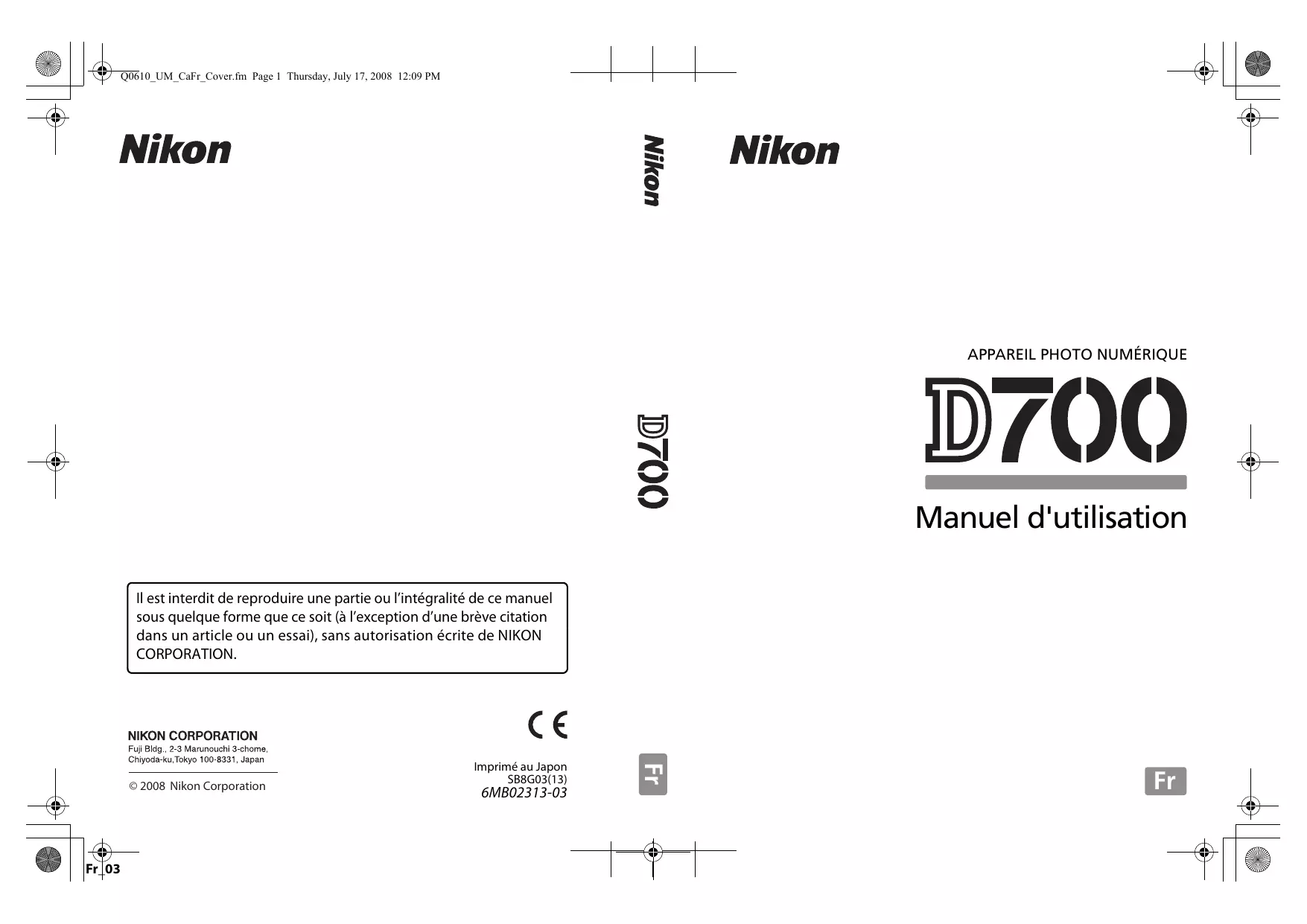 Retrouvez gratuitement la notice de l'appareil D700+24-120VR NIKON au format PDF.