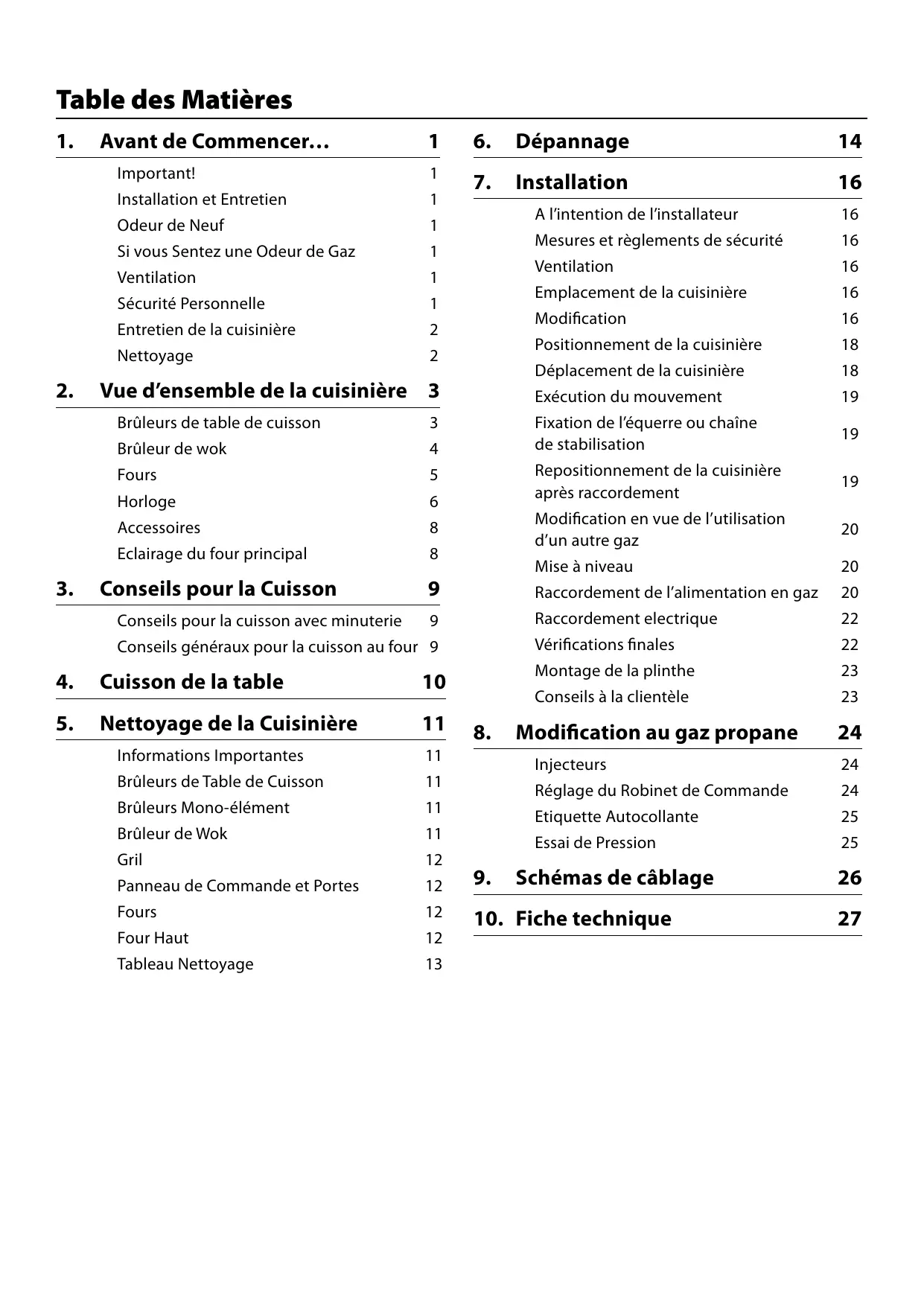 Si vous Sentez une Odeur de Gaz Nous vous remercions d’avoir acheté cette cuisinière. Installée et utilisée correctement, cette cuisinière vous donnera de nombreuses années de service fiable. Il est important de lire la présente section avant de commencer, en particulier si vous n’avez jamais utilisé de cuisinière mixte.