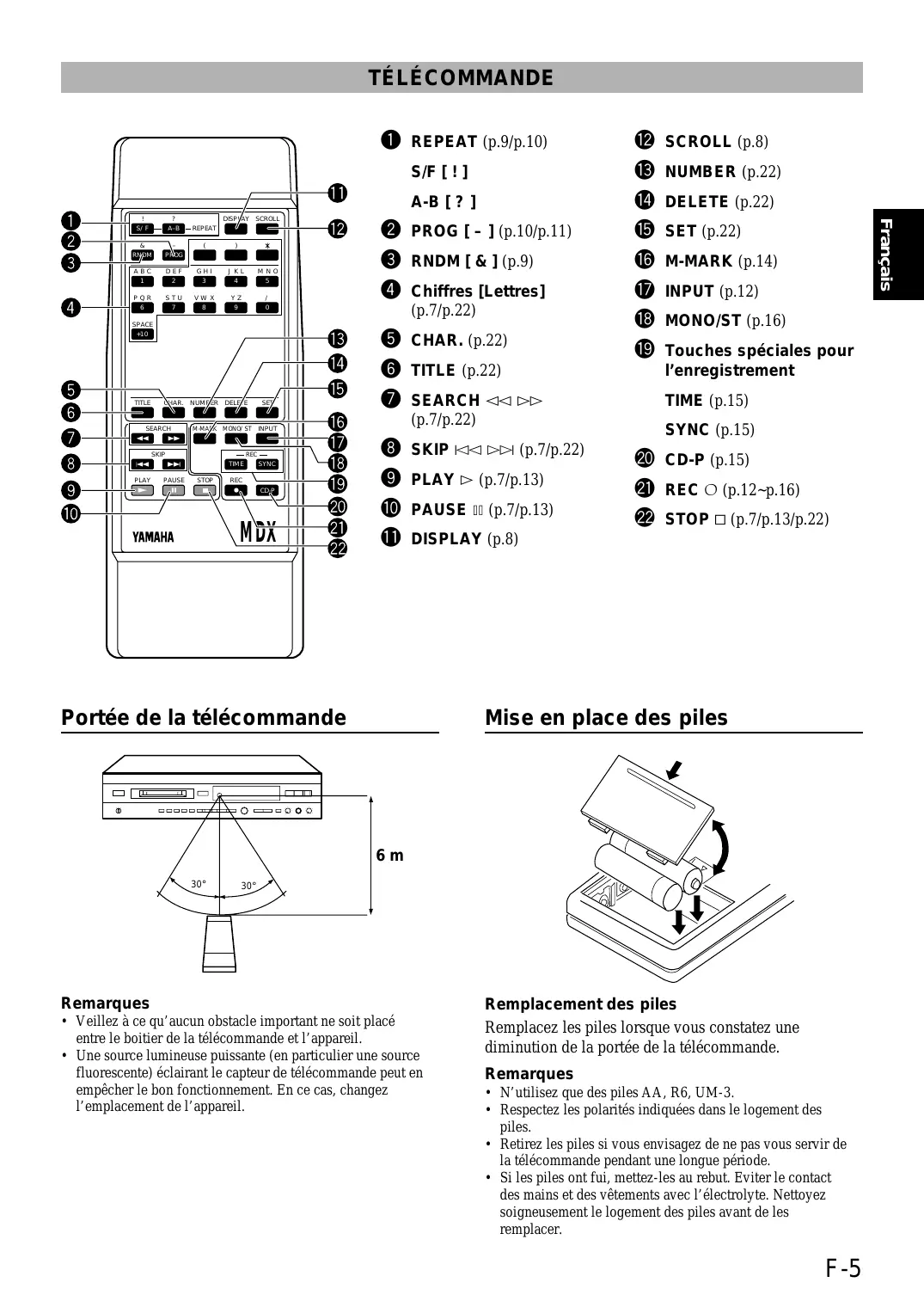 MODE D'EMPLOI MDX-596 YAMAHA