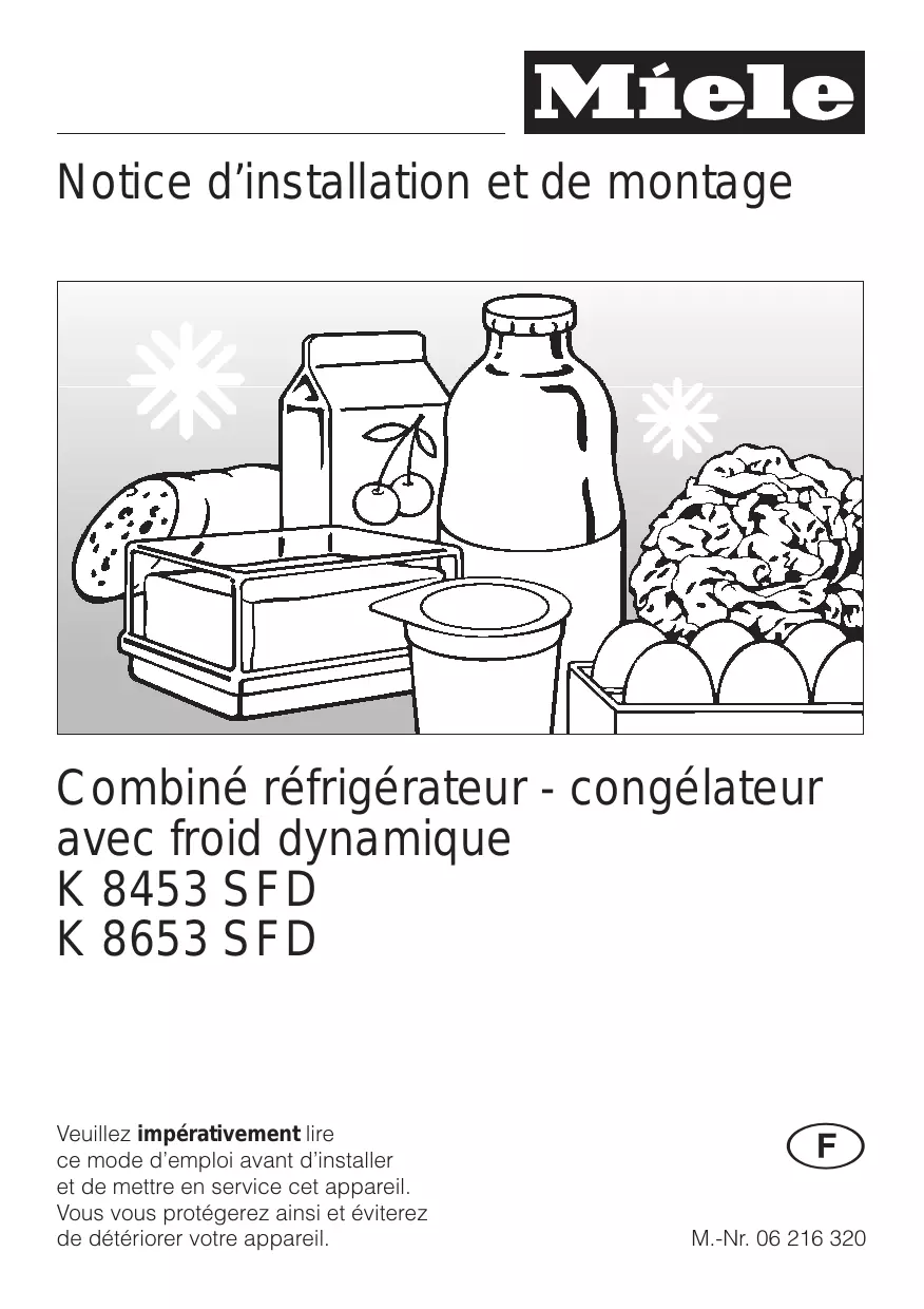 Notice d’installation et de montage Combiné réfrigérateur - congélateur avec froid dynamique K 8453 SFD K 8653 SFD Veuillez impérativement lire ce mode d’emploi avant d’installer et de mettre en service cet appareil. Vous vous protégerez ainsi et éviterez de détériorer votre appareil.