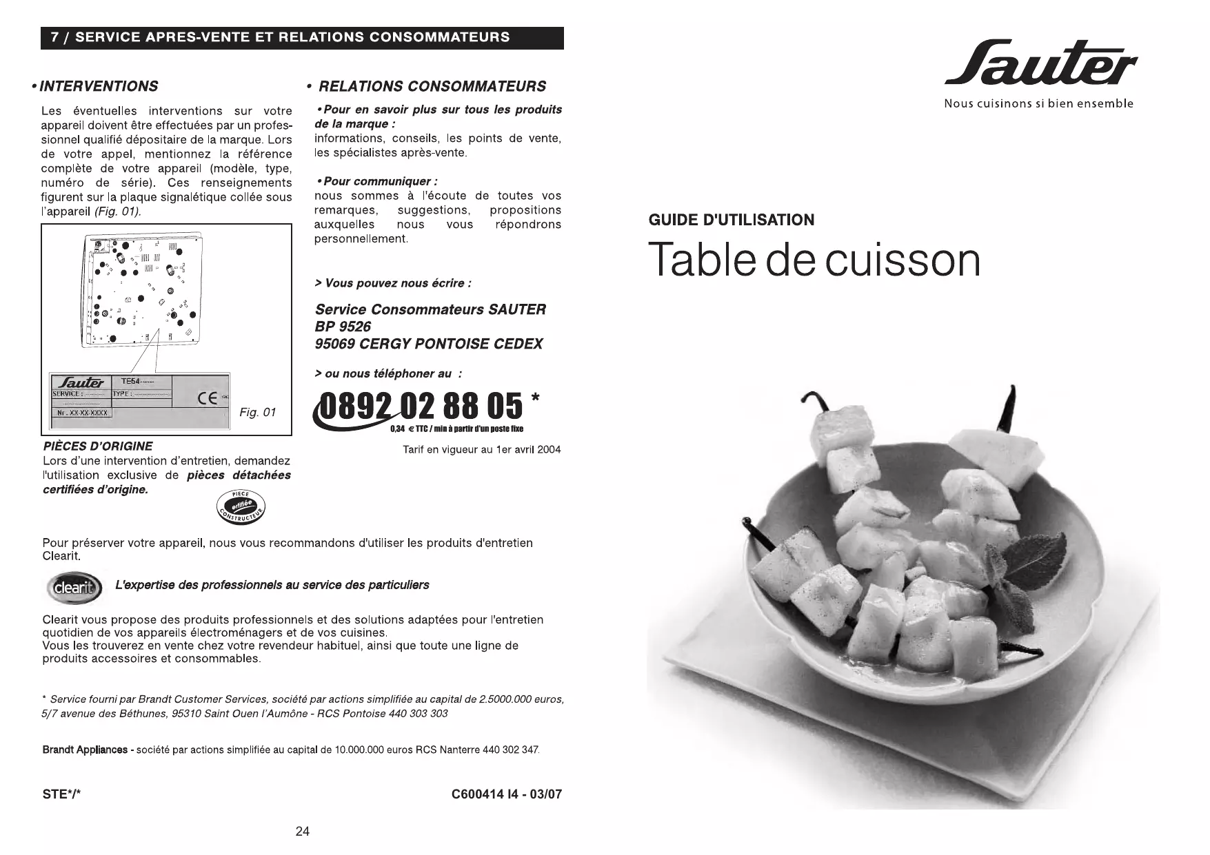 STE609FF1 - Table de cuisson SAUTER - Notice d'utilisation et mode d'emploi gratuit