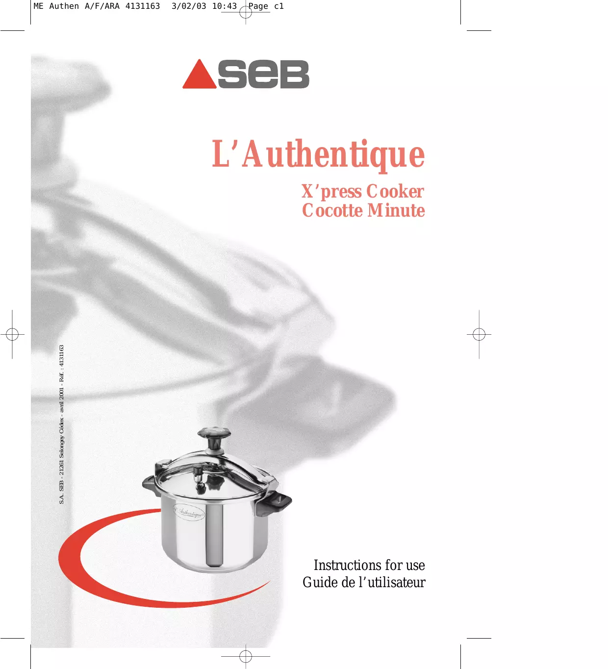 Téléchargez la notice de votre Autocuiseur au format PDF gratuitement ! Retrouvez votre notice AUTHENTIC 10L P05316 - SEB et reprennez votre appareil électronique en main. Sur cette page sont publiés tous les documents nécessaires à l'utilisation de votre appareil AUTHENTIC 10L P05316 de la marque SEB.