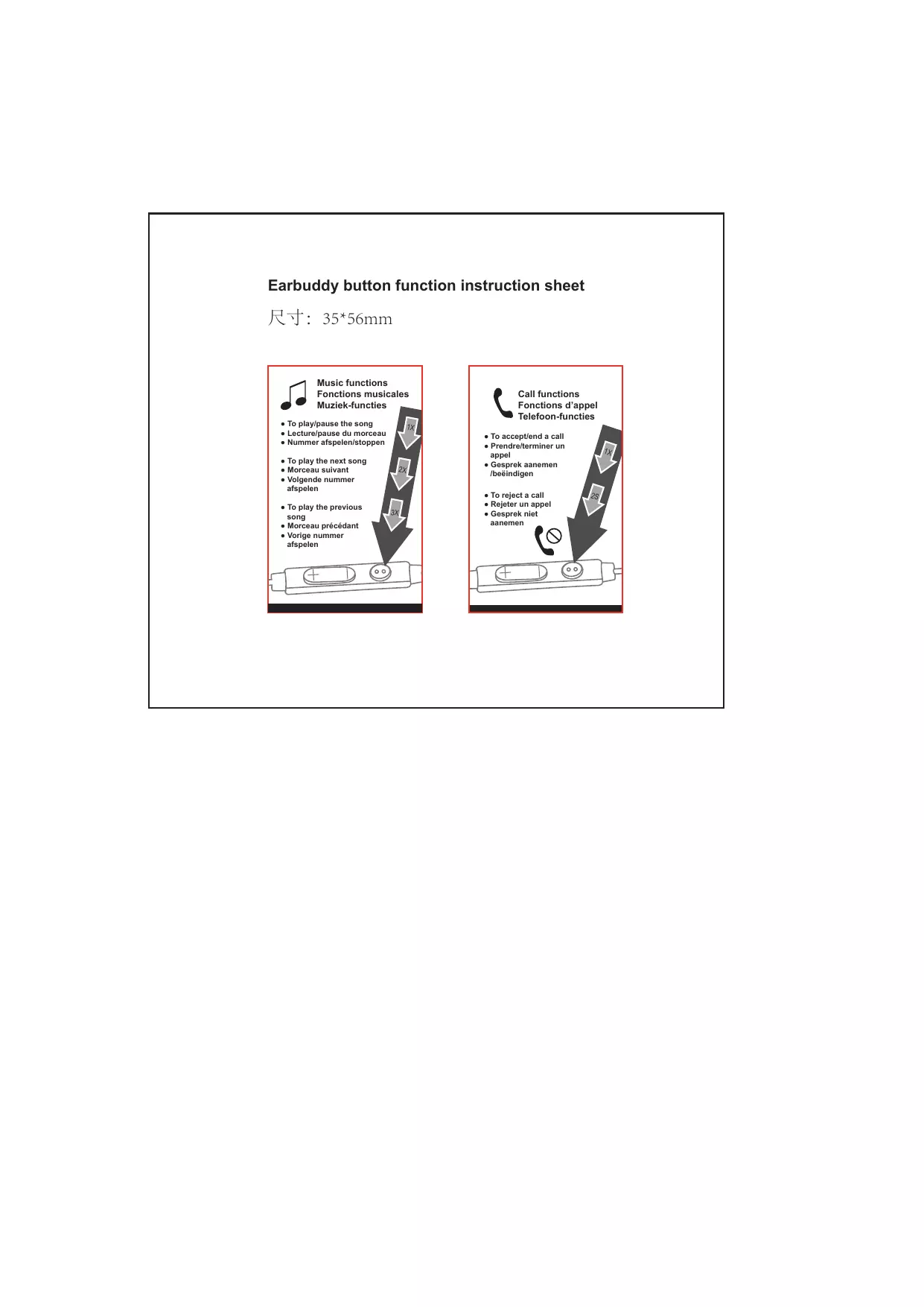 | Dimensions approximatives | Dimensions des écouteurs : 2.5 x 2.0 x 2.0 cm |